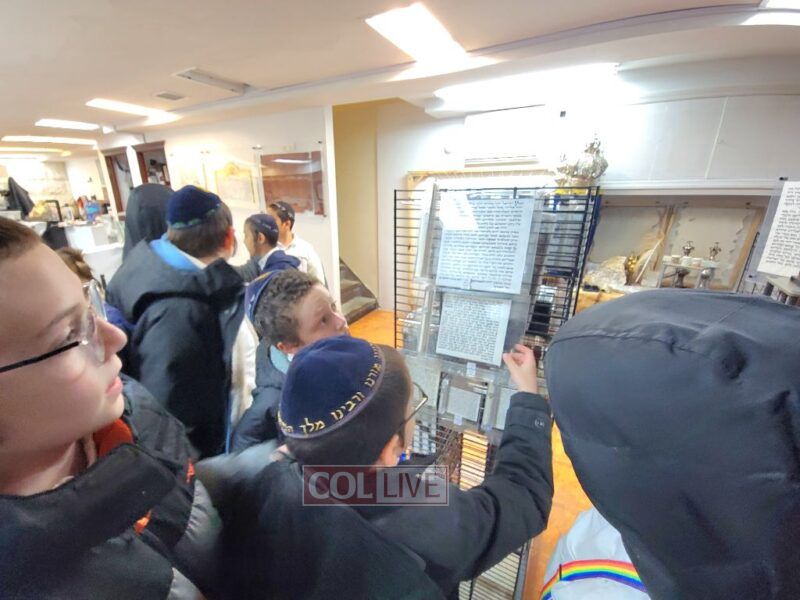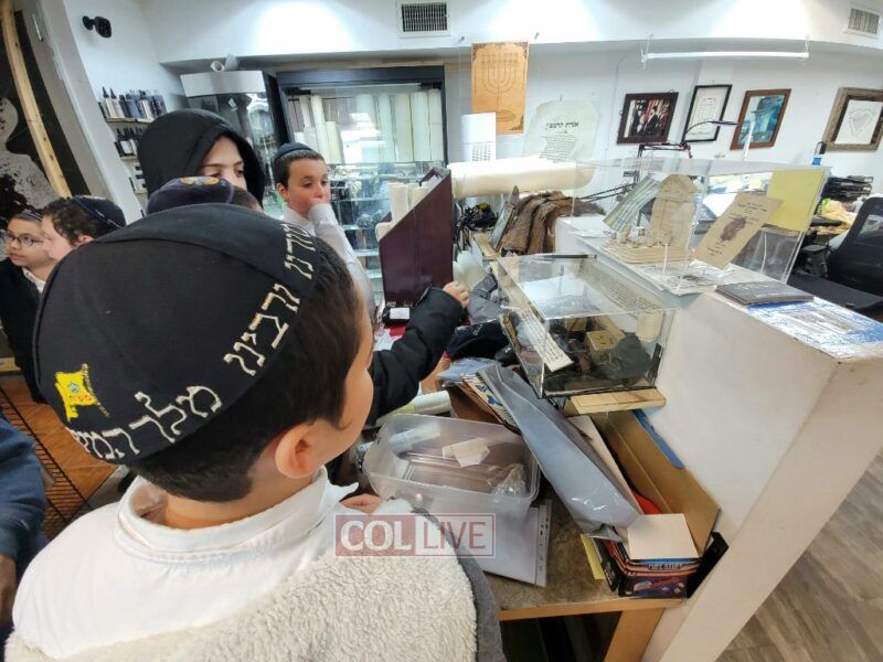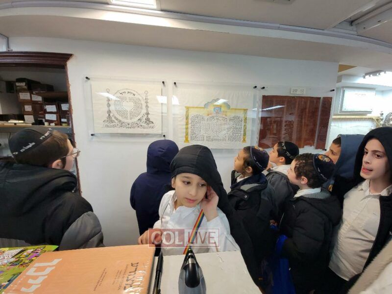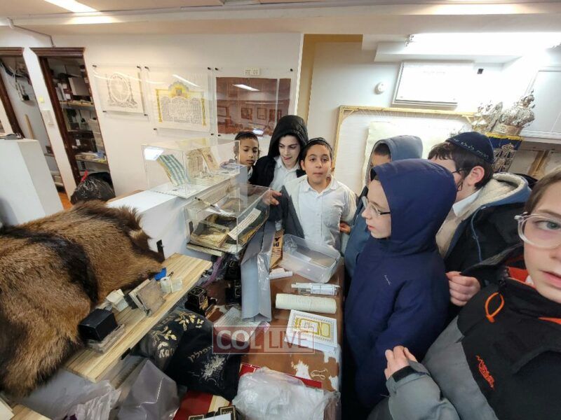 After Mincha the boys were treated to yet another trip…! As purim is approaching the boys got to visit the office of Rabbi Liran, a Sofer Stam, to watch as he prepares megillas. The boys were also able to see Mezuzos, Sifrei Torah and Tefilin.