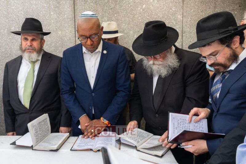 The BP also proclaimed Education and Sharing Day in honor of the Rebbe, with a proclamation presented to the Queens Shluchim at the Ohel.