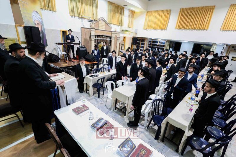 The impressive Siyum took place with great splendor and dignity around festively set tables in the main hall of the yeshiva, under the leadership of the Rosh Yeshiva shlit”a, together with the yeshiva’s rabbanim and mashpi’im.