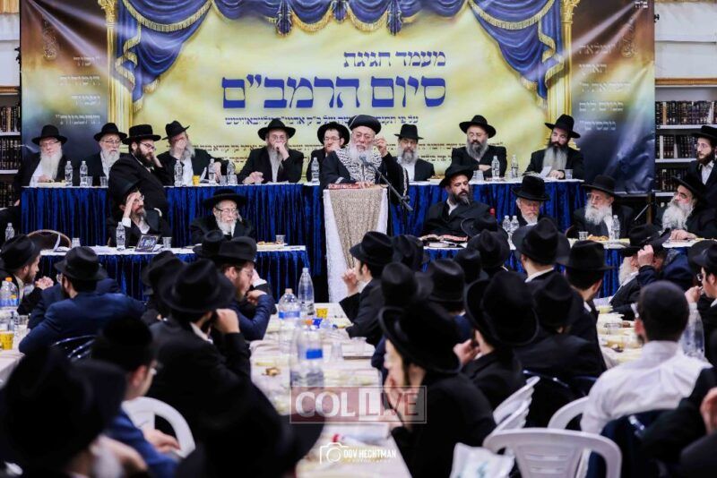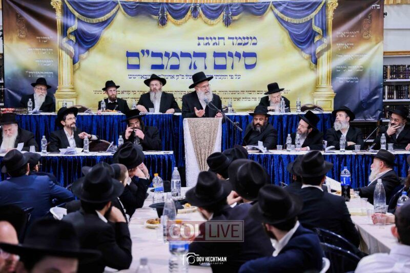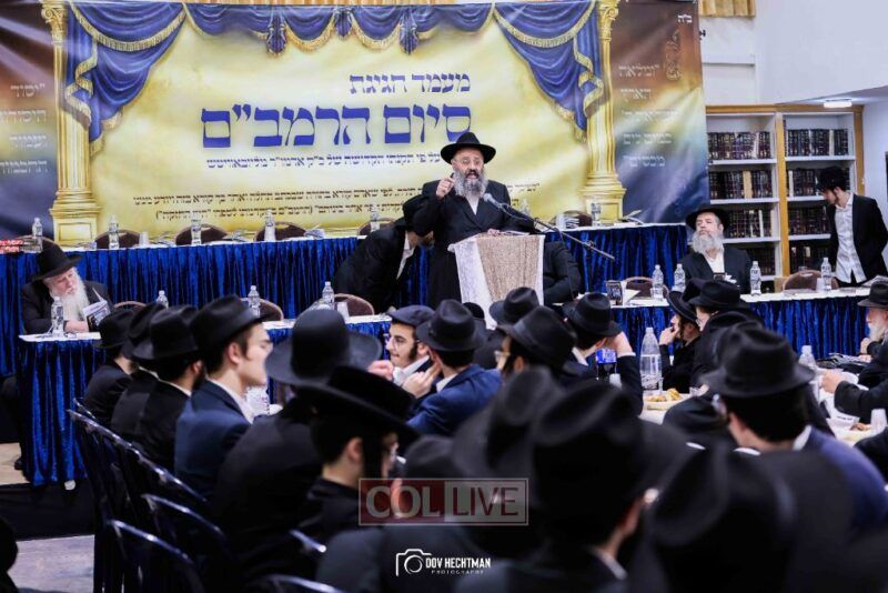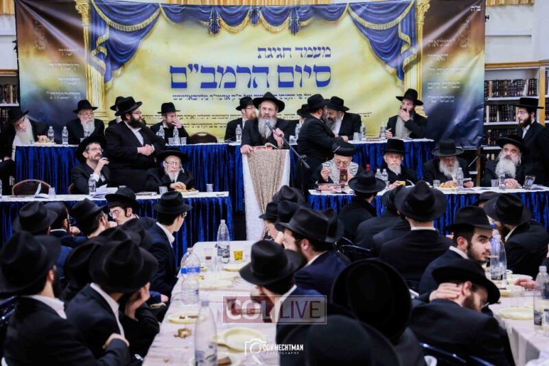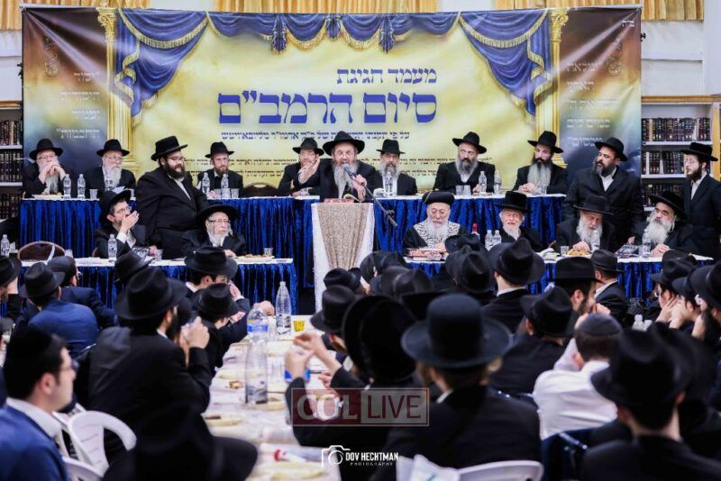 Dozens of Rebbes and leading rabbinic figures participated, arriving to strengthen and encourage the students who faithfully studied the Rambam daily until its completion.