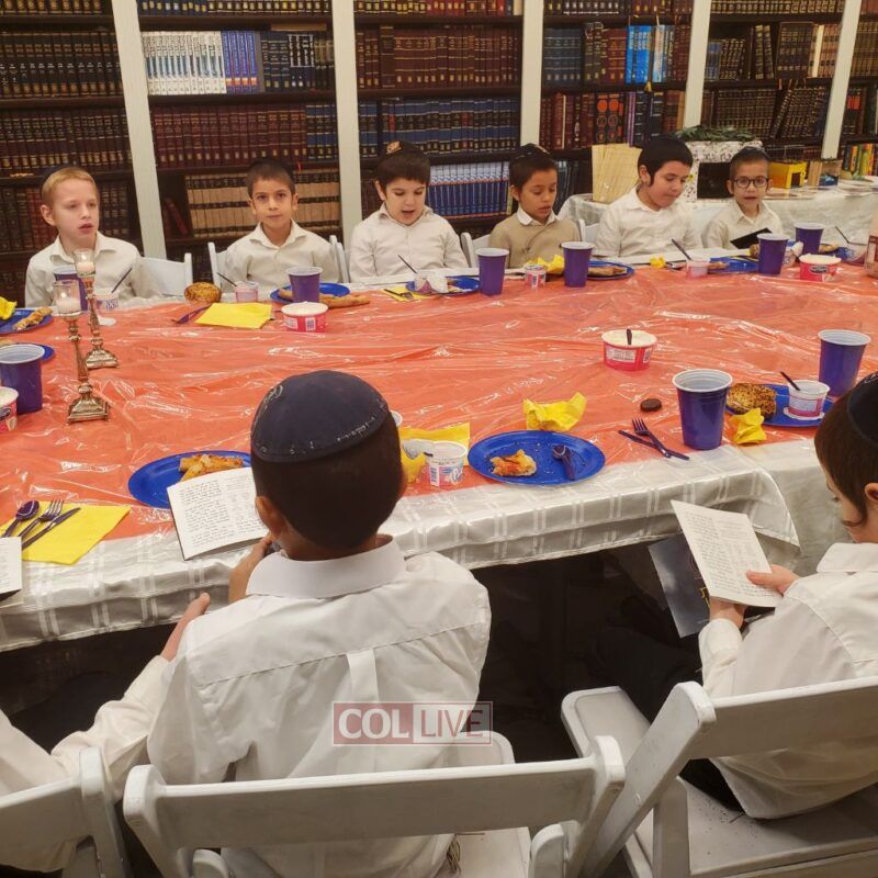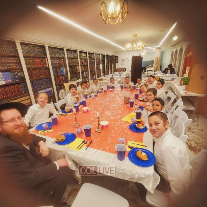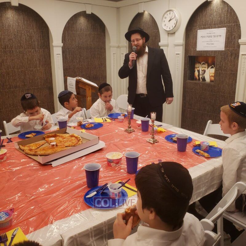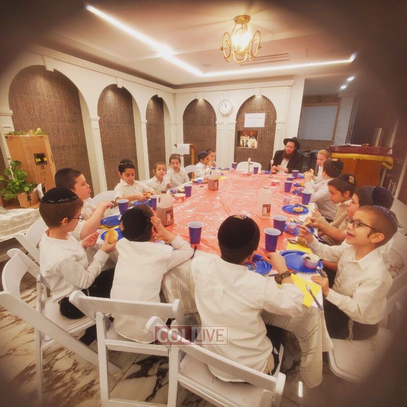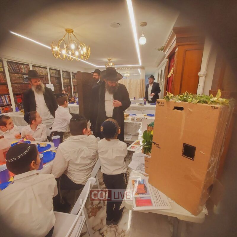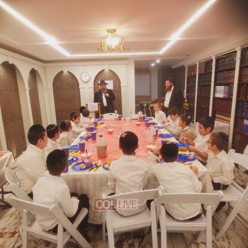 A festive Seuda was prepared celebrating this momentous occasion. Talmidim were joined by their parents who listened to the Siyum and the beginning of the next Masechta. a special highlight was when the boys had the zechus to receive a Brocha from Rabbi Yosef Braun, Rov of the Crown Heights Beis Din and the father of a 6th grade student of the Yeshiva, who proceeded to inspect the Sukkos together with the boys while discussing with them which and why each is kosher or not.