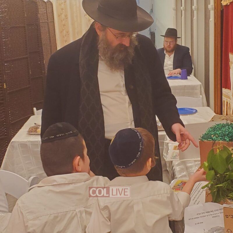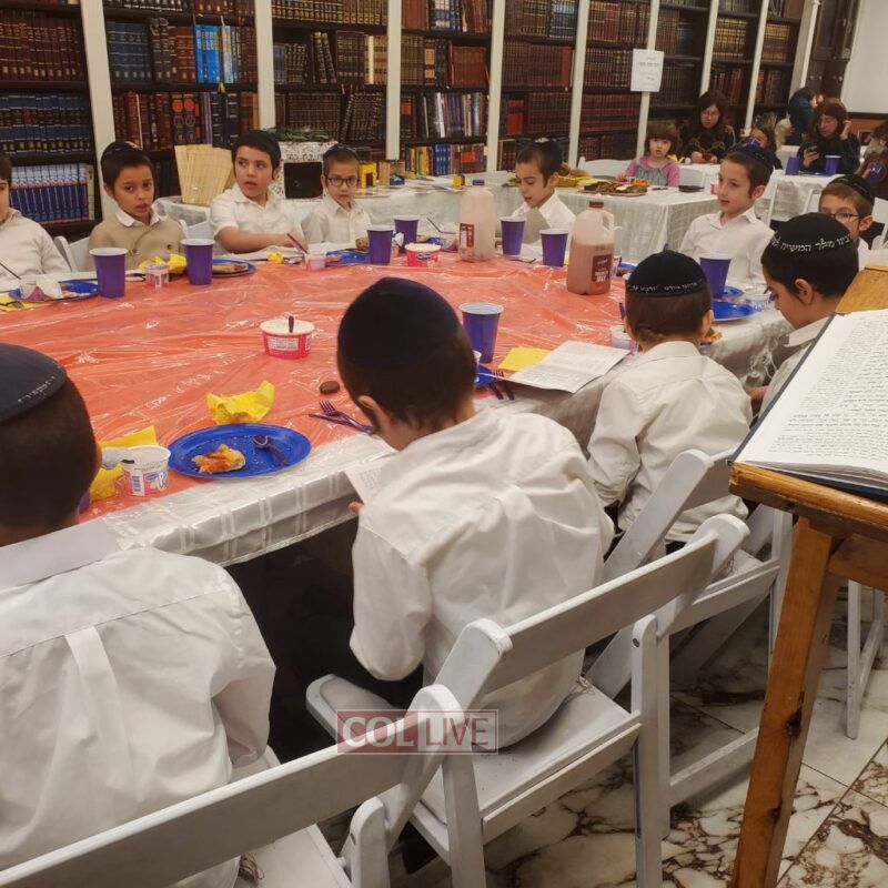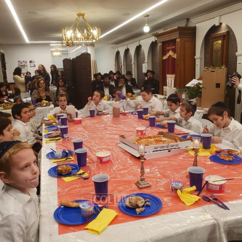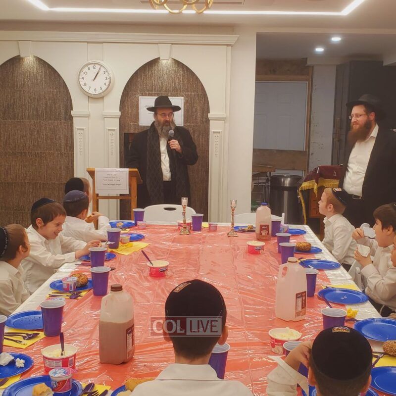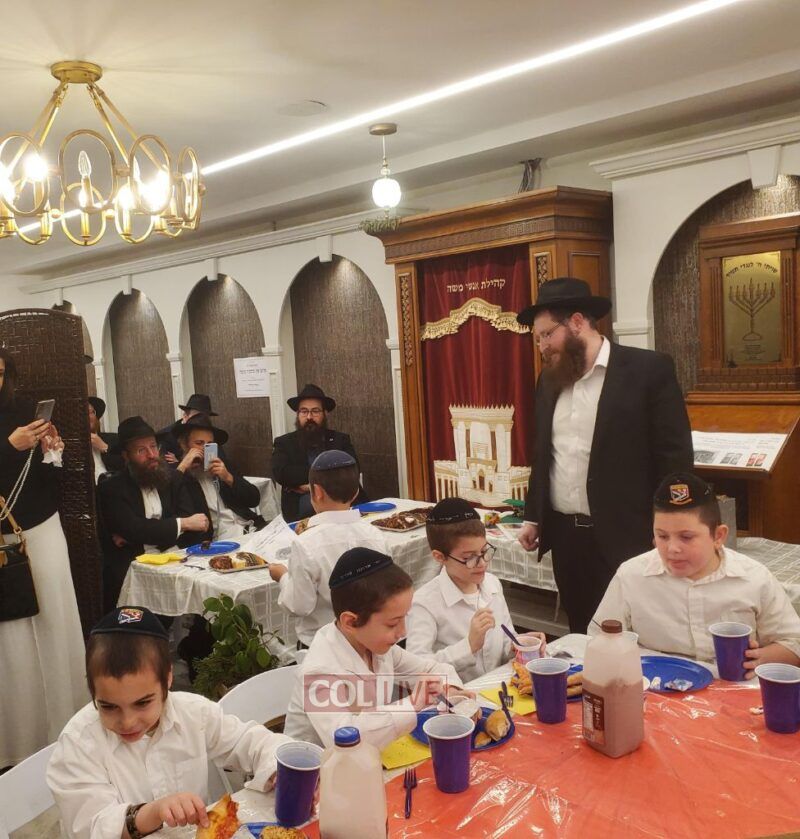A festive Seuda was prepared celebrating this momentous occasion. Talmidim were joined by their parents who listened to the Siyum and the beginning of the next Masechta. a special highlight was when the boys had the zechus to receive a Brocha from Rabbi Yosef Braun, Rov of the Crown Heights Beis Din and the father of a 6th grade student of the Yeshiva, who proceeded to inspect the Sukkos together with the boys while discussing with them which and why each is kosher or not.