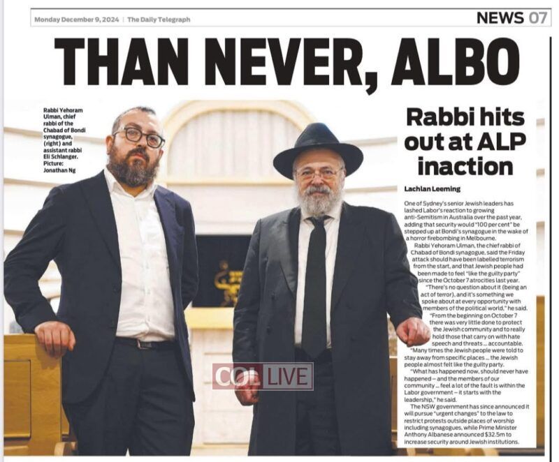 was my Rebbi at London Primary (Elementary) school under Rabbi Cousin. I cant imagine what his father is feeling right now no father should see his children go before him. What is most frustrating is this could have been prevented but the utterly gutless and cowardly leftist Australian Govt remains passive while Jews are gunned down in the streets. The blood is on their hands, this will soon be coming here to my city here in Canada with an equally gutless and cowardly leftist Canadian Govt. Hashem Yerachem Aleinu !! May Reb Eli ben Binyamins neshams Have an aliyah and… Read more »