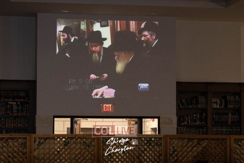 The crowd then turned their attention to the screens for a brief video featuring the many encounters Rabbi Herson had with the Rebbe.