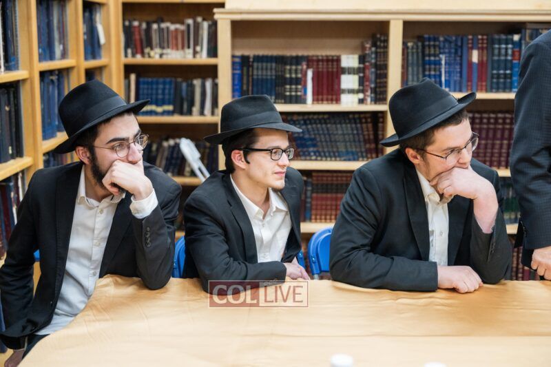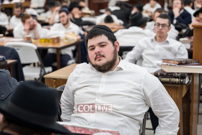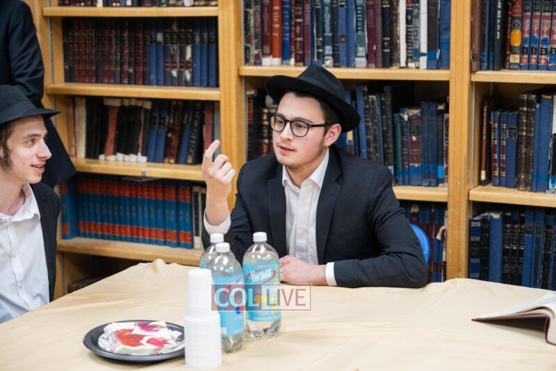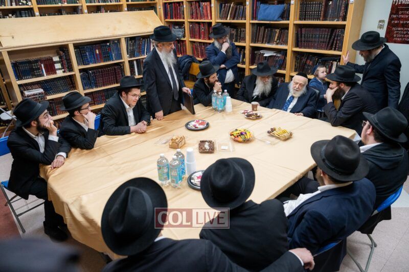 Following the shiur, Rabbi Raitport was accompanied by Rosh HaMossad Rabbi Mendel Blau, Head Mashpia Rabbi Nachman Schapiro, and Rosh Yeshiva Rabbi Shlomo Kaplan to meet a group of bochurim to further discuss the sugya in depth. The group delved into topics related to the gemara currently being studied, with Rabbi Raitport emphasizing the importance of full immersion in learning and achieving a thorough understanding of the material. He also shared additional personal stories about his experiences with the Rebbe and his own time as a young bochur.