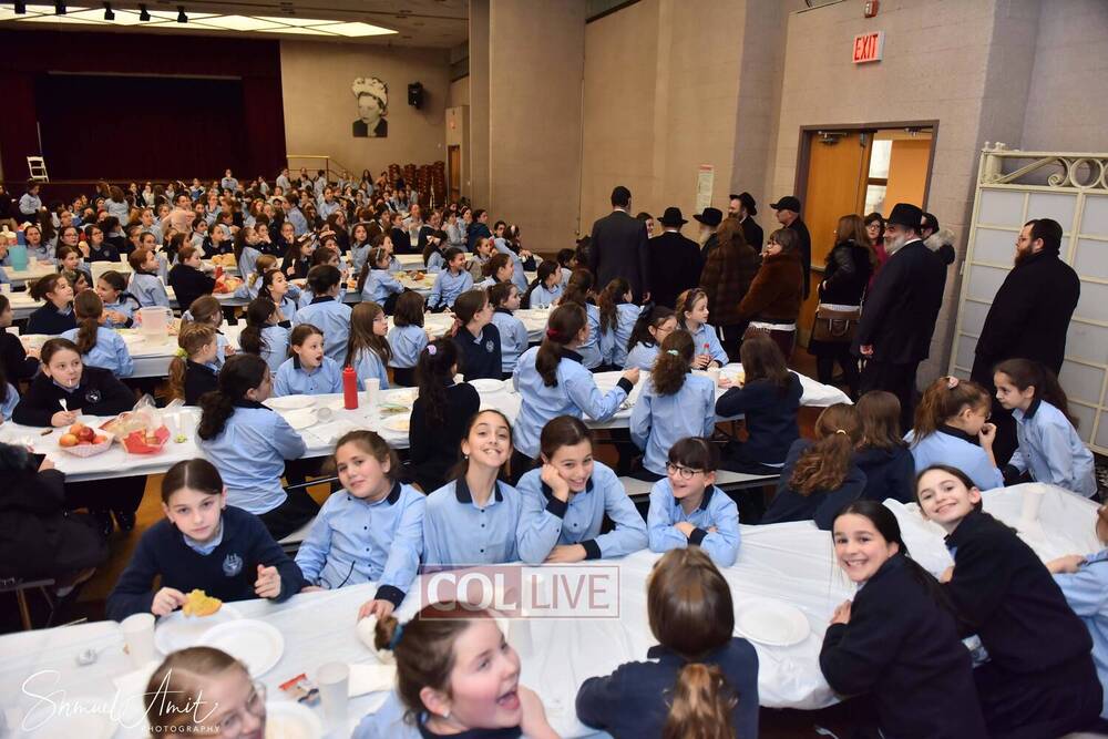 Rabbi Raitport addressed the students of both the younger and older divisions in the school lunchroom, telling them they should each be like a candle, adding light to the world around them, and they should continue to grow in their Torah and Mitzvos.