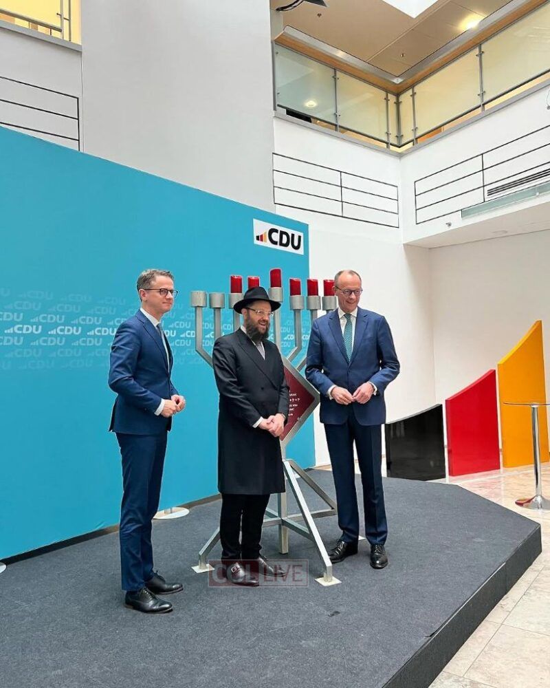 Each year, Rabbi Teichtal places a Chanukah menorah at CDU headquarters, and last year, Merz joined the lighting ceremony and delivered holiday greetings in front of the menorah.