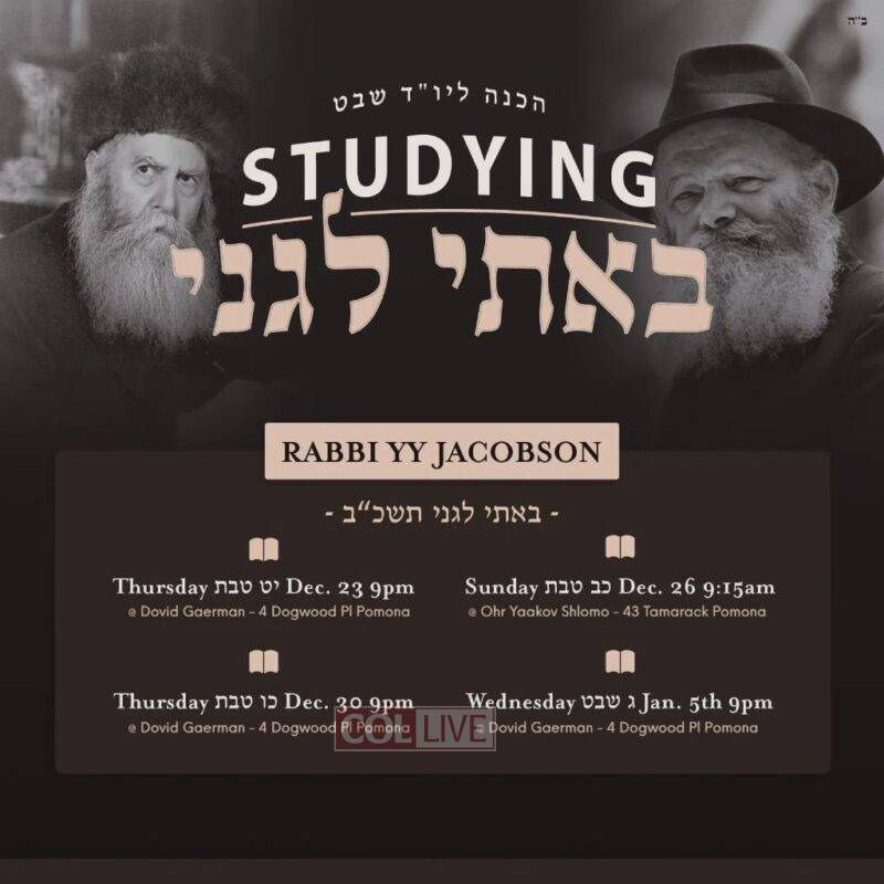 In preparation for Yud Shevat, Rabbi YY Jacobson taught to the Monsey Chabad community Part 5 of the incredible Maamar Basi Legani 5722 (1962), said by the Rebbe exactly 60 years ago.