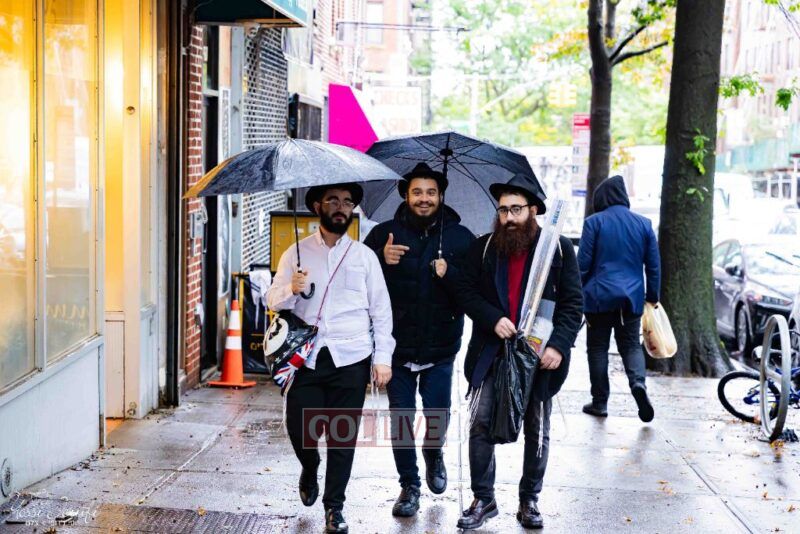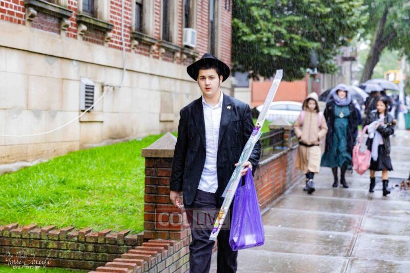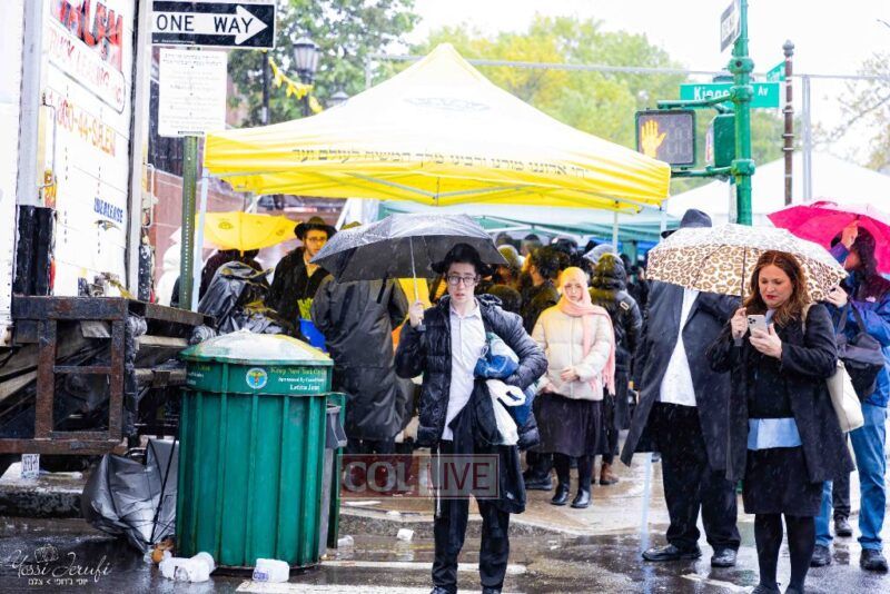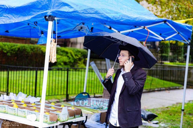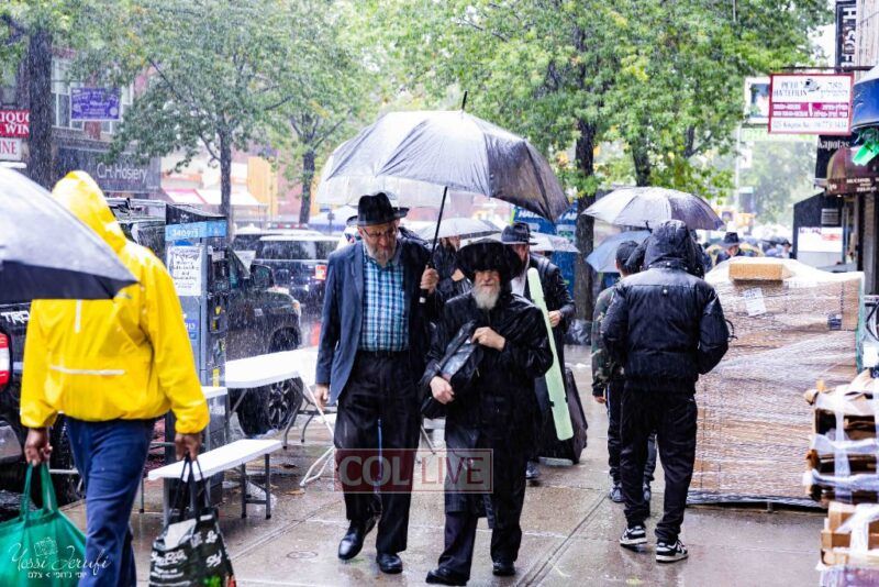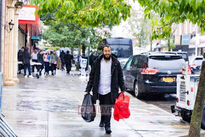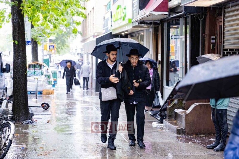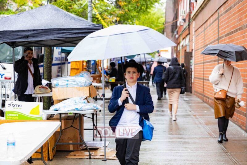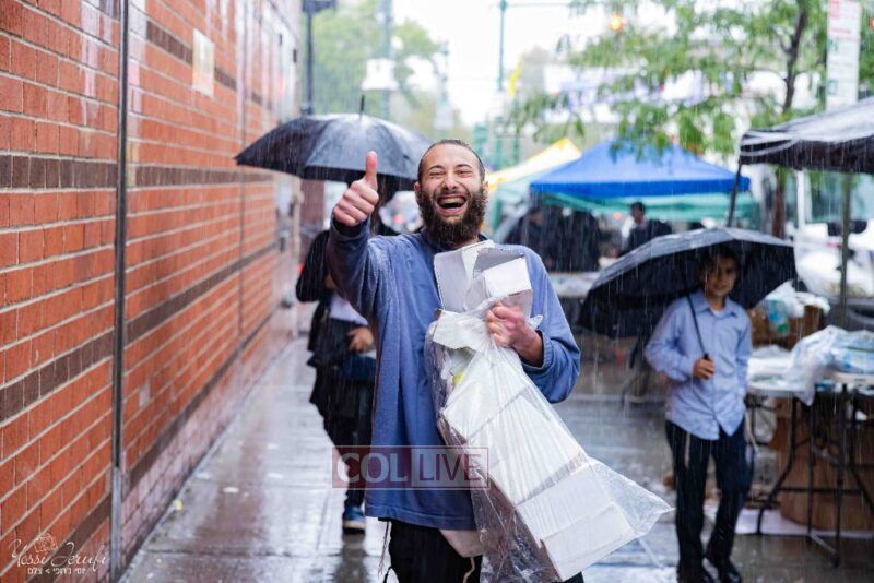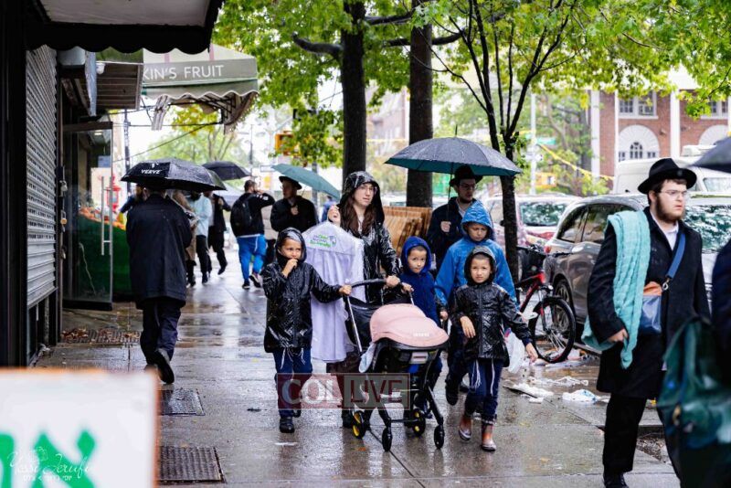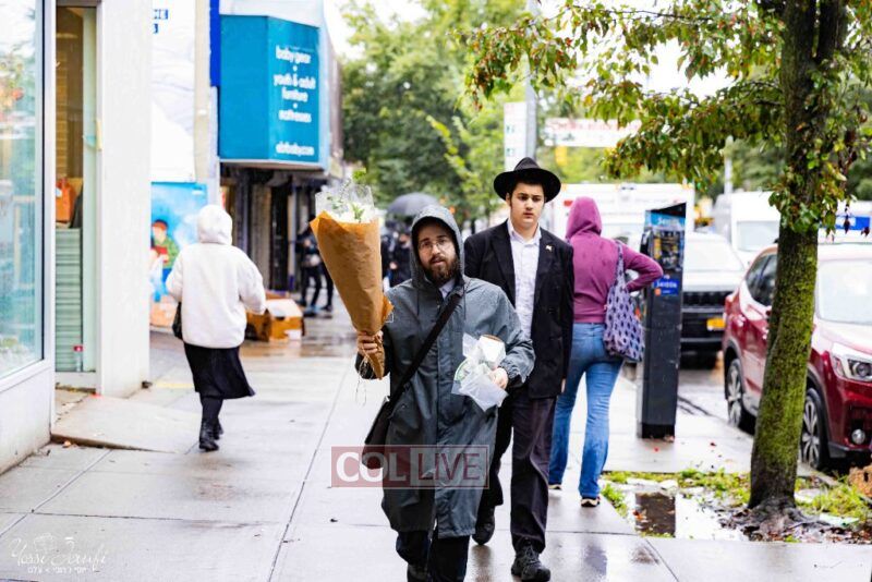 The heavy rain on Friday, Erev Sukkos did not dampen the joy of the upcoming Yom Tov as residents and guests prepared for the Sukkos holiday in Crown Heights. Photos