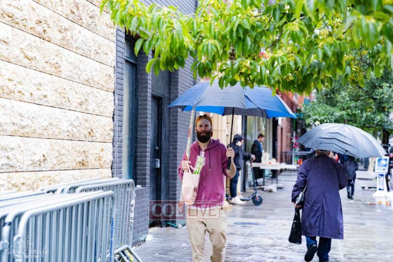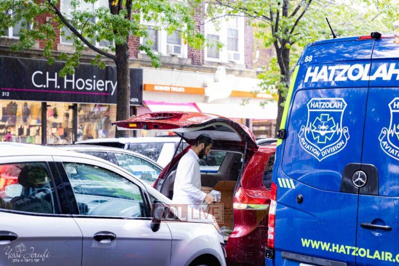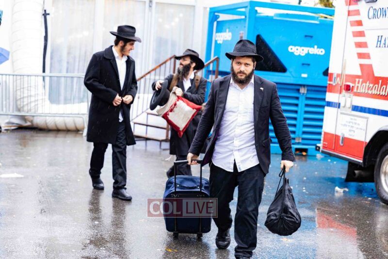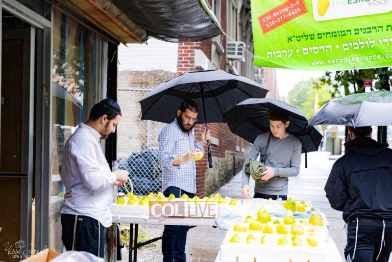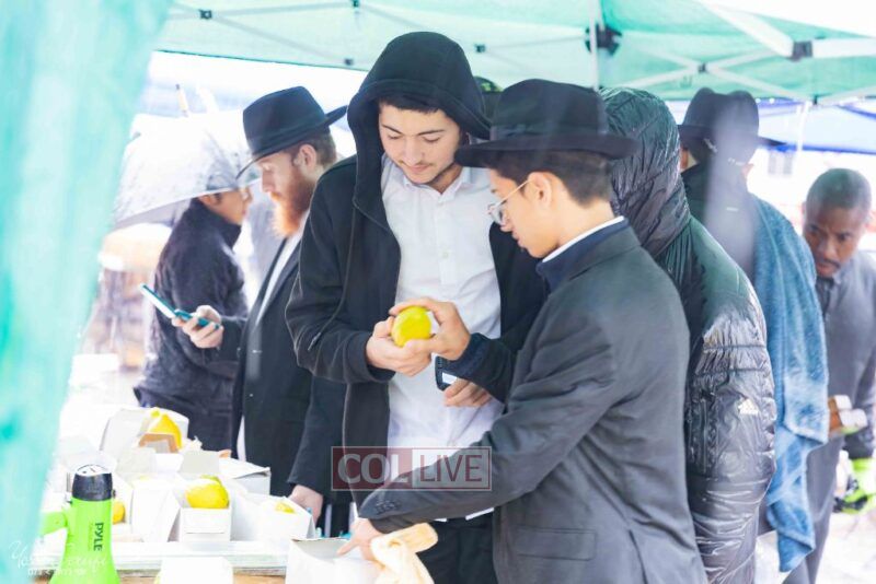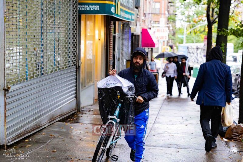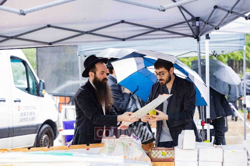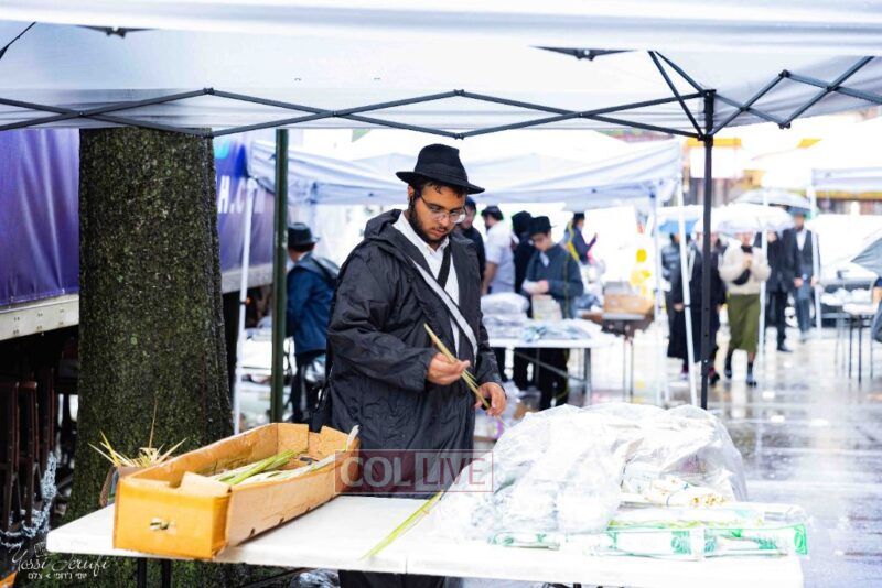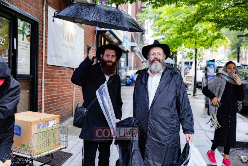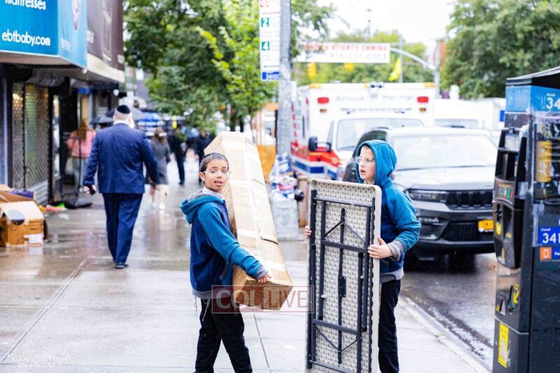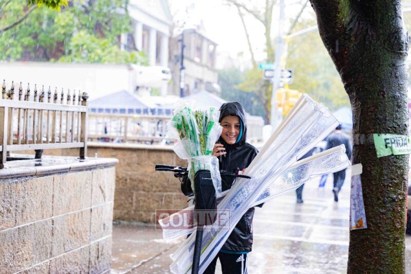 The heavy rain on Friday, Erev Sukkos did not dampen the joy of the upcoming Yom Tov as residents and guests prepared for the Sukkos holiday in Crown Heights. Photos