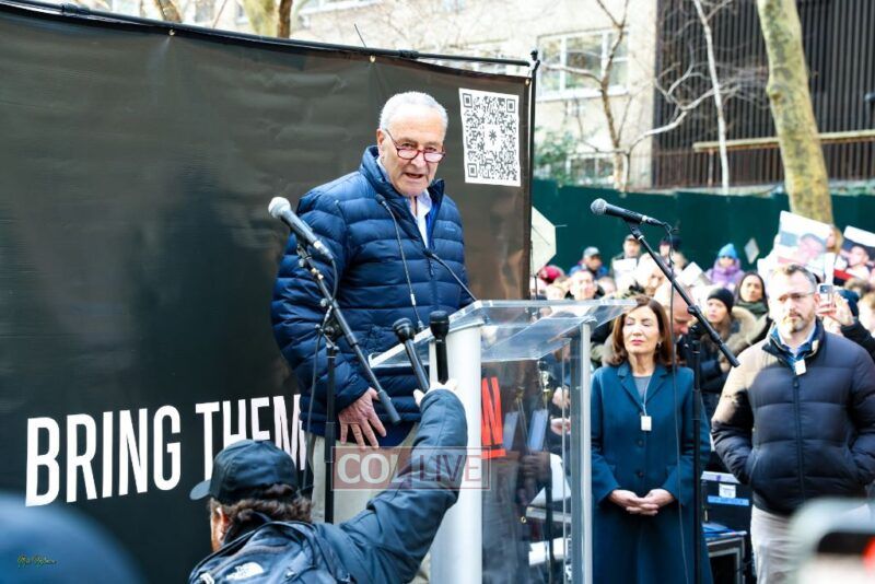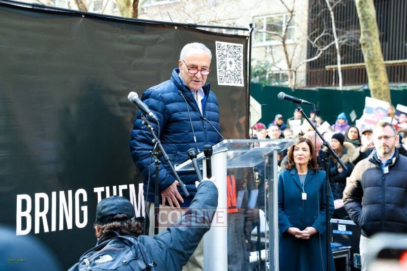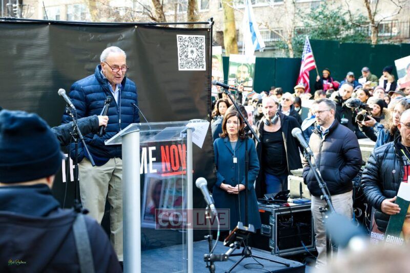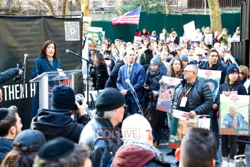 Governor Kathy Hochul and Senator Chuck Schumer called for the release of Israeli hostages from Gaza, in a rally marking 100 days since Hamas attacked. Former 13-year-old hostage Hila Rotem Shoshani spoke as well. Photos
