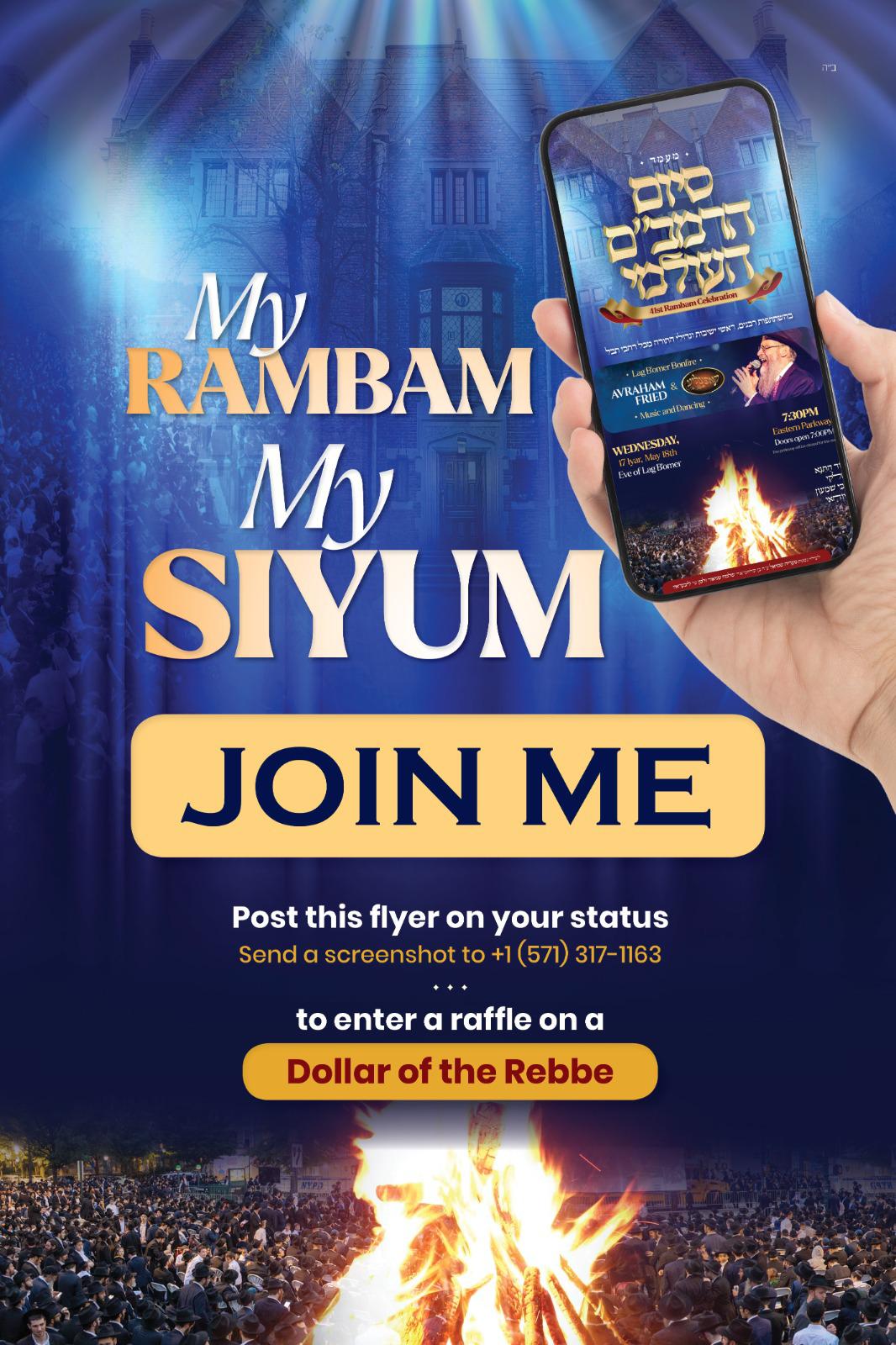 All those who share with their friends, family and acquaintances about the upcoming Siyum will be entered into a raffle for a precious dollar of the Rebbe.