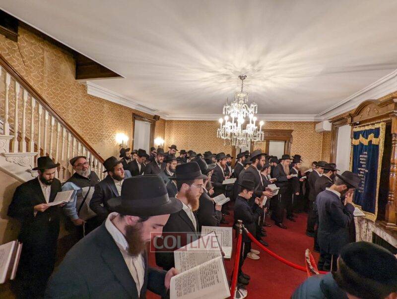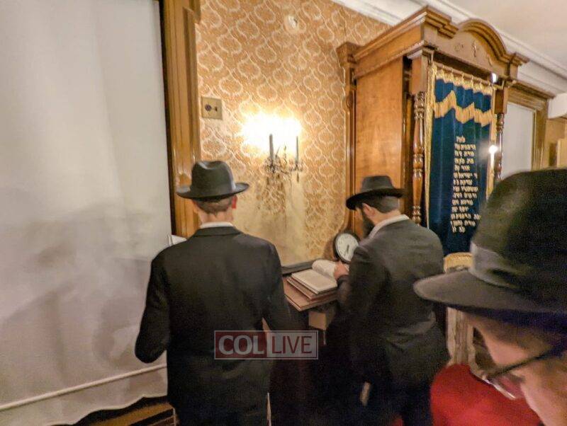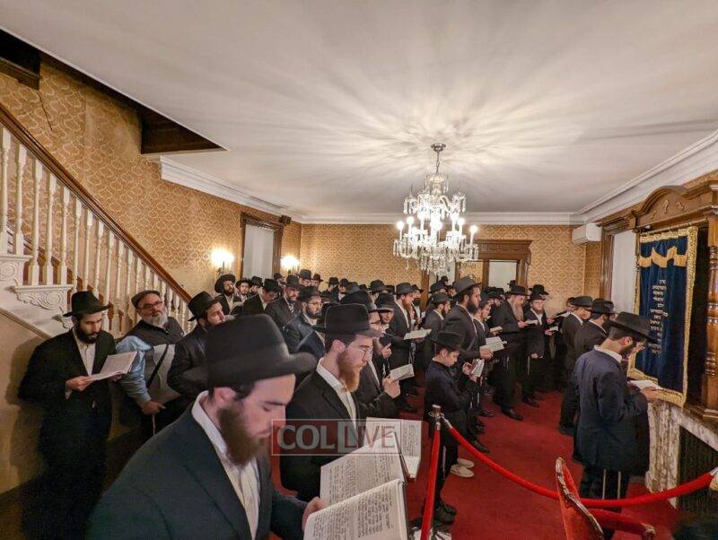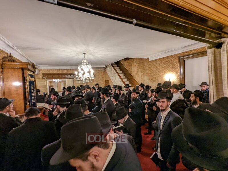 The Rebbe and Rebbetzin's home on President Street was opened for prayers for both men and women on the auspicious day of Yud Daled Kislev, the wedding anniversary of the Rebbe and Rebbetzin. Photos, Video