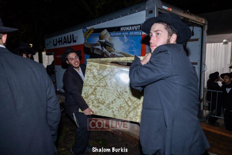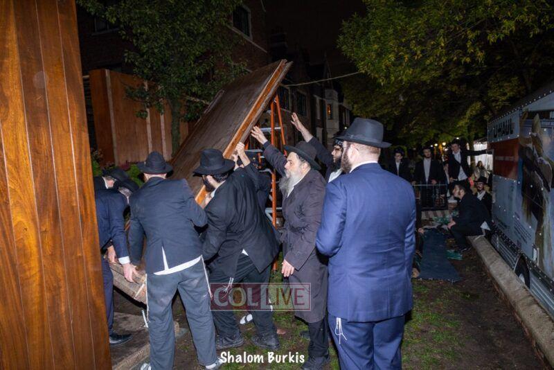 As soon as Yom Kippur was over, dedicated bochurim were quick to build the Rebbe's Sukkah on Motzei Yom Kippur in the courtyard of 770. Photos