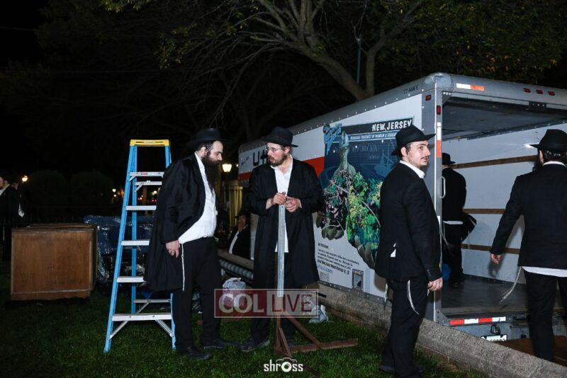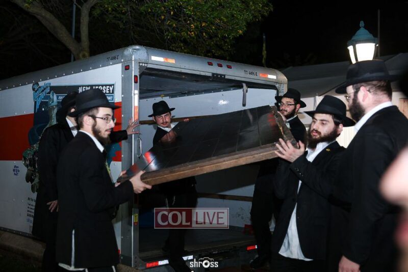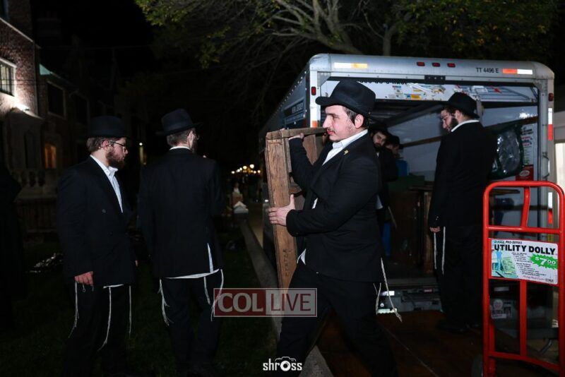As soon as Yom Kippur was over, dedicated bochurim were quick to build the Rebbe's Sukkah on Motzei Yom Kippur in the courtyard of 770. Photos