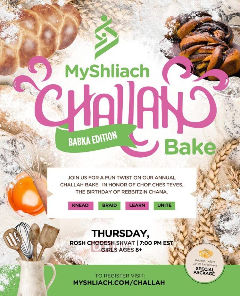 The Challah Bake taking place Thursday, Rosh Chodesh Shvat, at 7 PM EST promises to be an evening of inspiration and a great opportunity for the participants to connect with fellow yaldei hashluchim while honoring the legacy of Rebbetzin Chana.