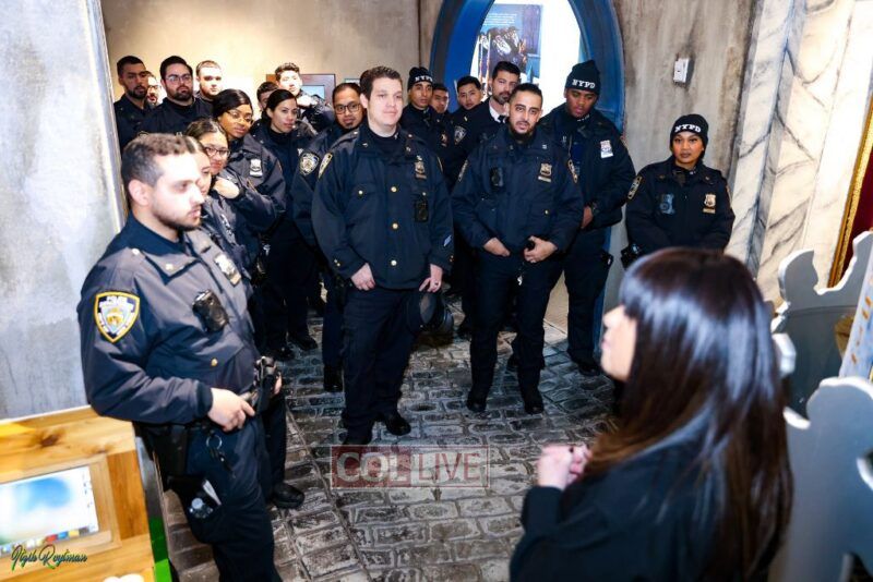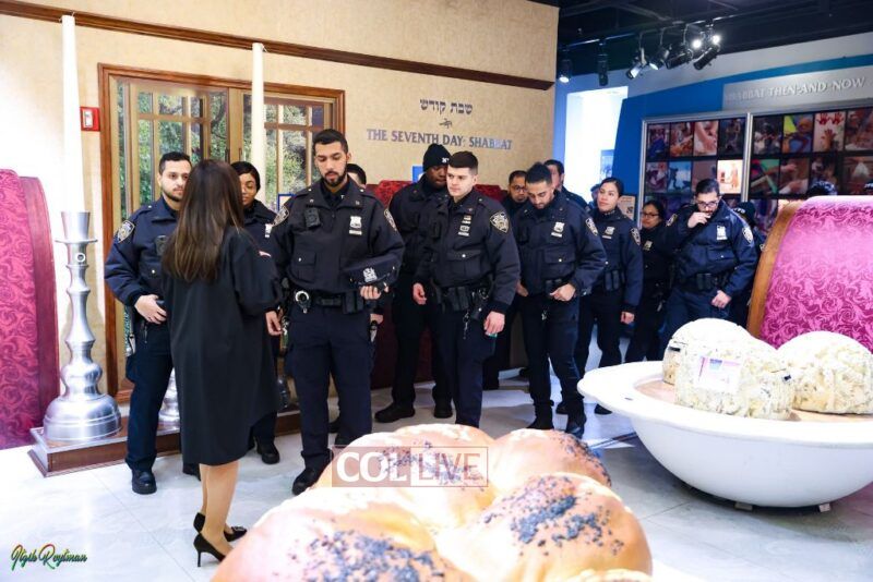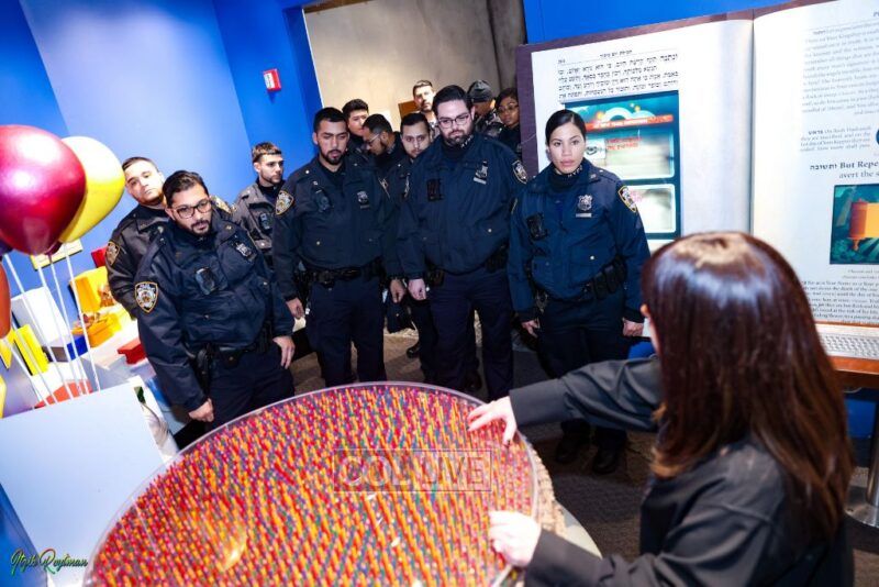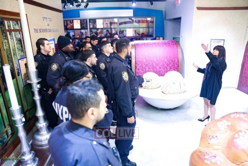 The Museum’s co-founder Devorah Halberstam, Honorary NYPD Commissioner and NYPD liaison, gave the officers a tour and provided insight into Jewish life and culture of the Brooklyn neighborhood, home to the large Chabad community and the home base that thousands visit each year.