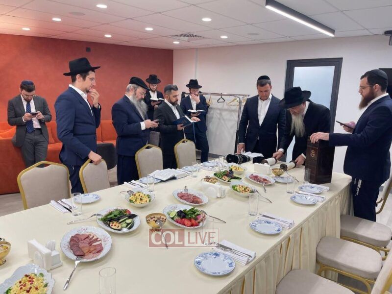 The third stop was in the city of Mogilev in Belarus, to visit the Jewish Center and the large school in the center of the city, which is in the final stages of construction. After the Chief Rabbi was honored to place a mezuzah at the main entrance, a tour was led by the rabbi of the city, Rabbi Menachem Mendel Alperovitz.