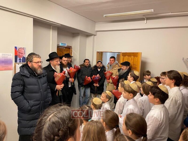 When Rabbi Lazar arrived at the school, the students enthusiastically welcomed him with a joyous song. He held a meeting with a number of the students’ parents, including some who themselves has studied in the school as youngsters. He then toured the classrooms and tested the children on Hilchos Chanukah, and was impressed by their vast knowledge. During the Chanukah party and Menorah lighting which followed, each student received Chanukah gelt.