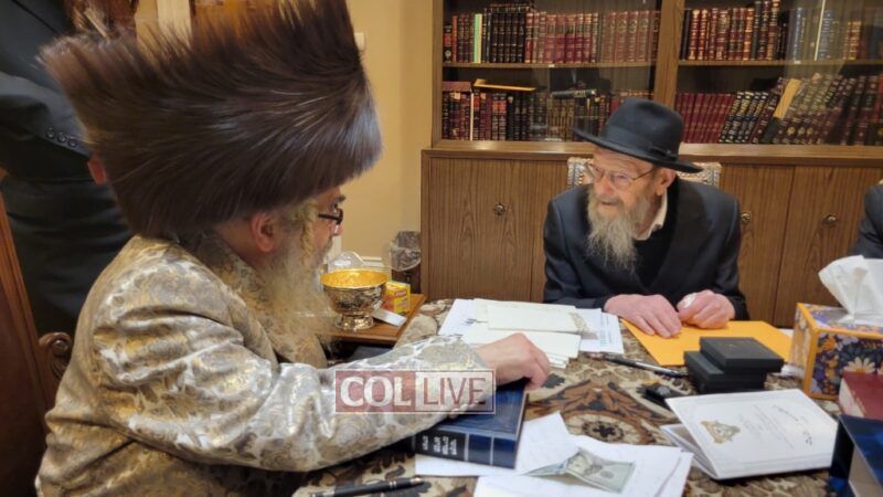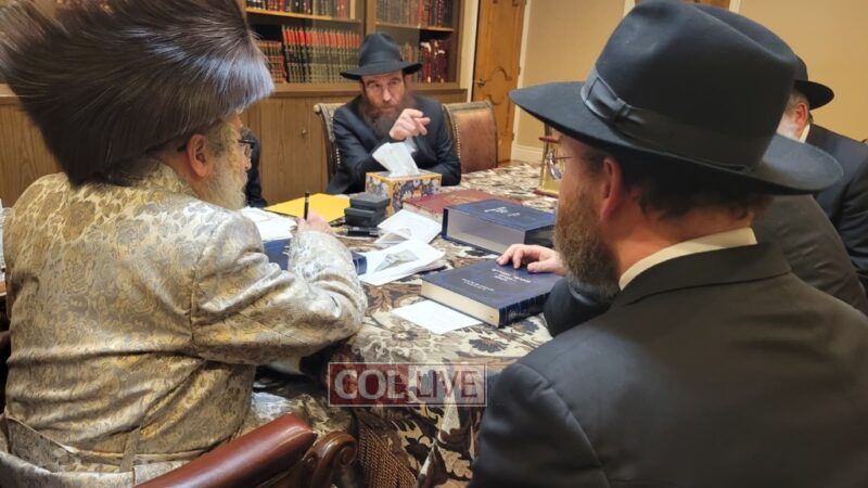 A delegation of Chabad rabbonim and mashpi’im was warmly received at the private residence of the Satmar Rebbe, Rav Aharon Teitelbaum of Kiryas Yoel, Monroe, New York, on Monday.