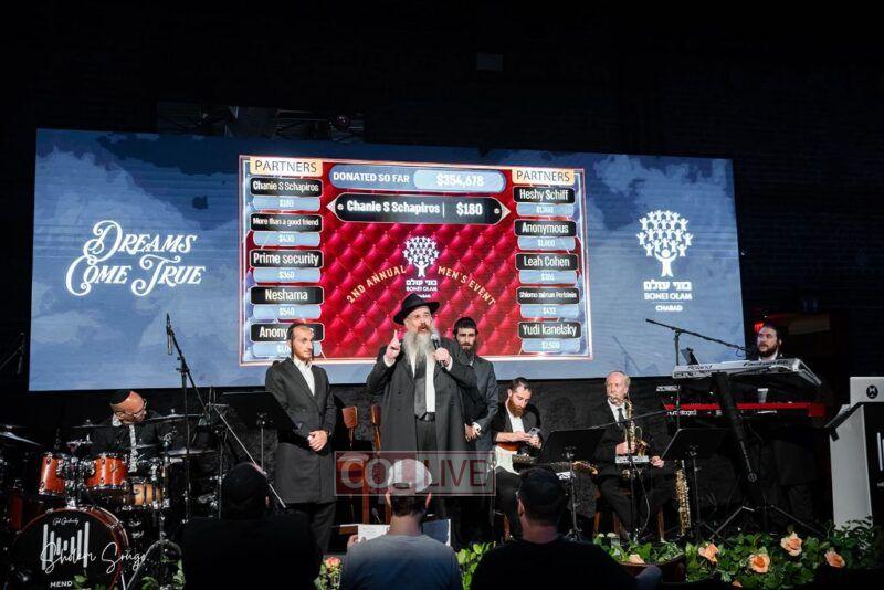 Singer Shulem Lemmer performed the emotional song Alein, written in honor of Bonei Olam’s holy work, followed by a heartfelt Kumzitz together with Eli Marcus.