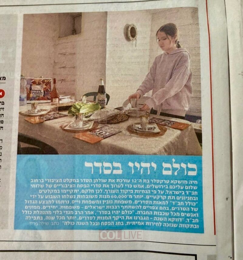 “Everyone will be at the Seder—and everyone will be okay,” said Rabbi Mendy Blau of Colel Chabad, using a Hebrew play on words (Kulam Yiheyu BeSeder). He emphasized that specifically this year, they increased the volume of meals to more than any other year, fueled by a prayer for true freedom. As the holiday continues under high alert, the message from the shelters is clear: the light of Pesach cannot be extinguished by Iranian missiles.
