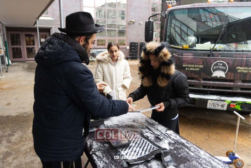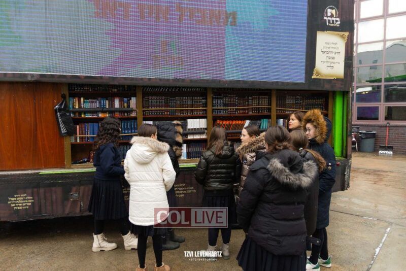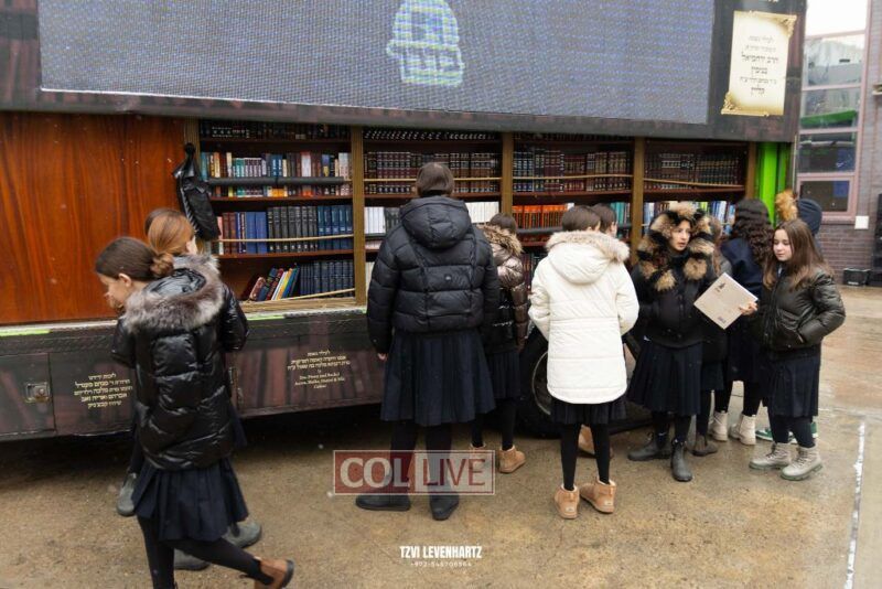 In honor of Hei Teves, the Ohr Hachasidus Book Truck was stationed outside of Bais Rivkah school, and students were given the opportunity to purchase a book or sefer.
