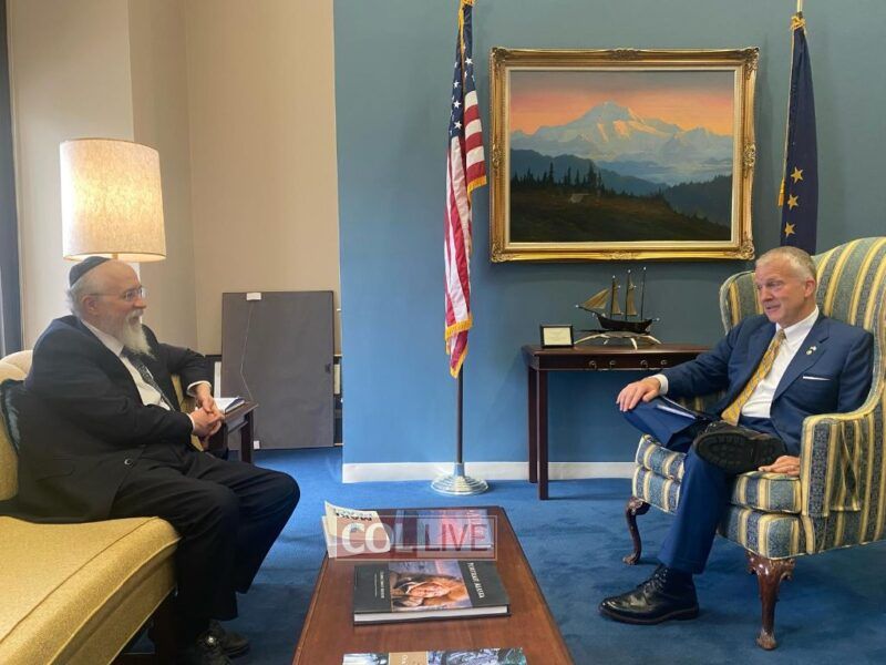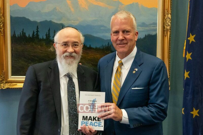 Before the Prime Minister’s speech, Rabbi Greenberg met with Alaska US Senator Dan Sullivan as well as with Alaska US Senator Lisa Murkowski and presented them with the new book “To Make Peace” in English, encapsulating the Rebbe’s approach that the only way to enduring peace and true harmony is by standing firm against all pressures.
