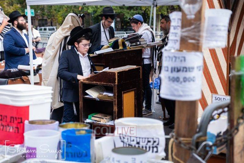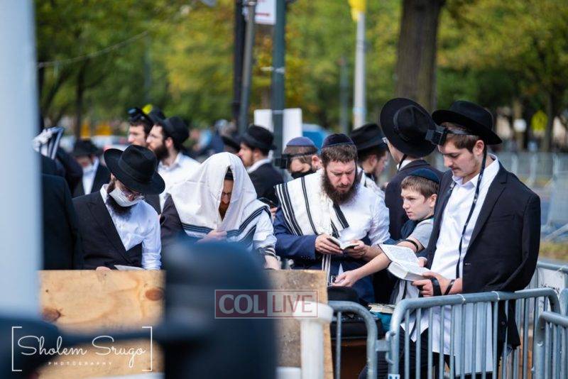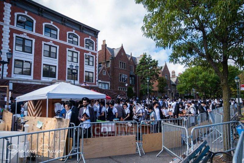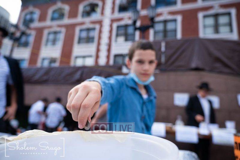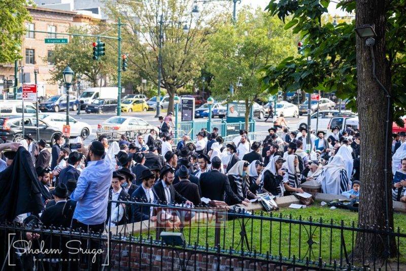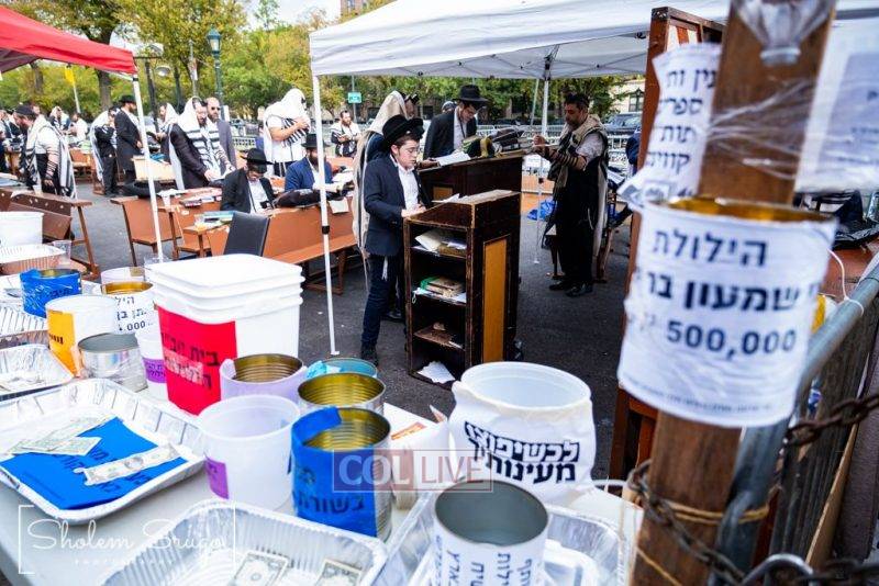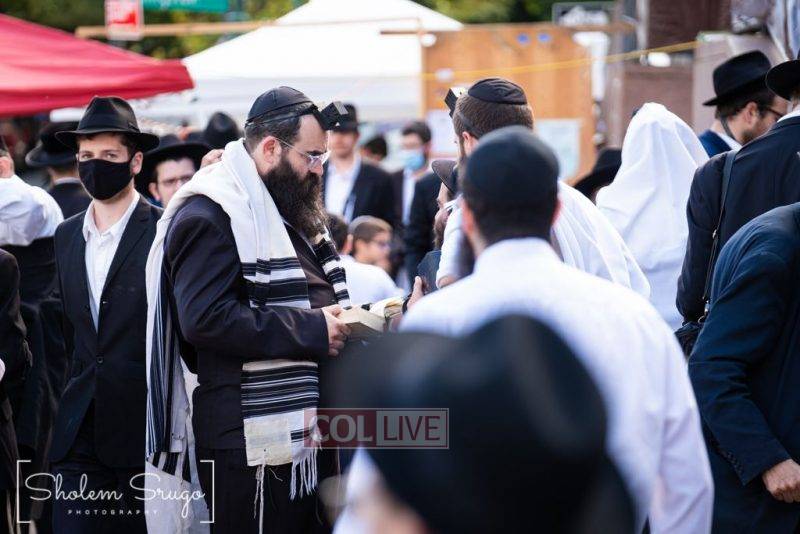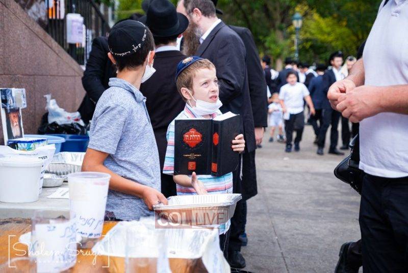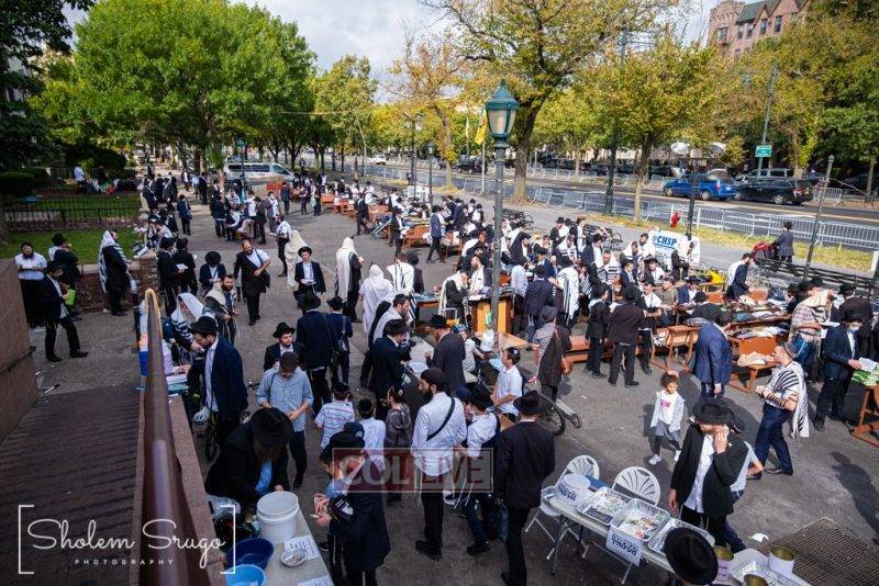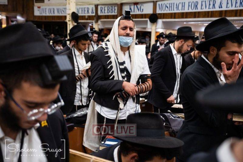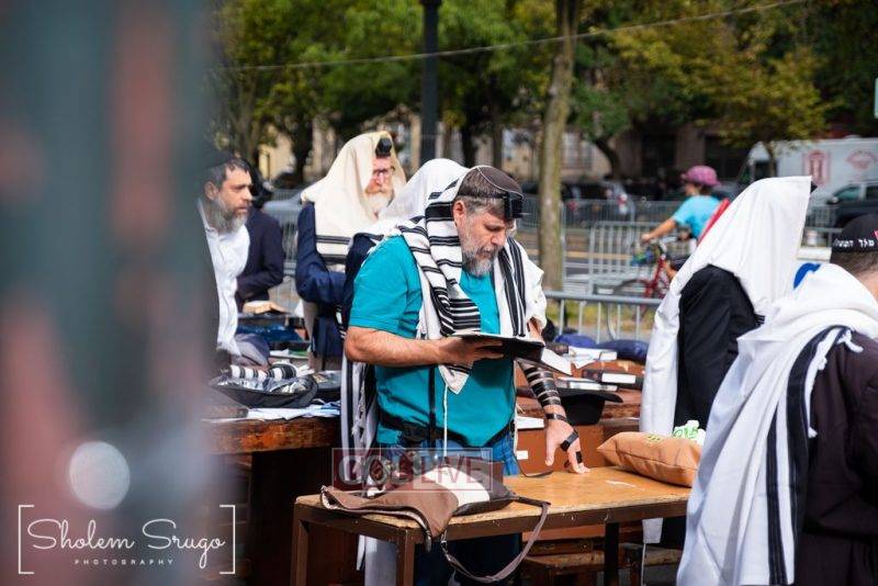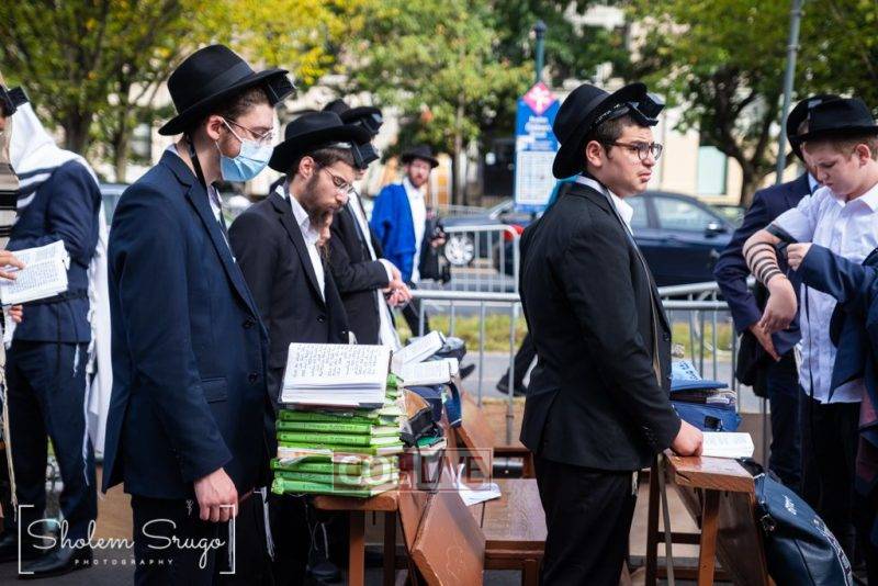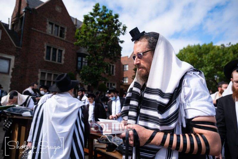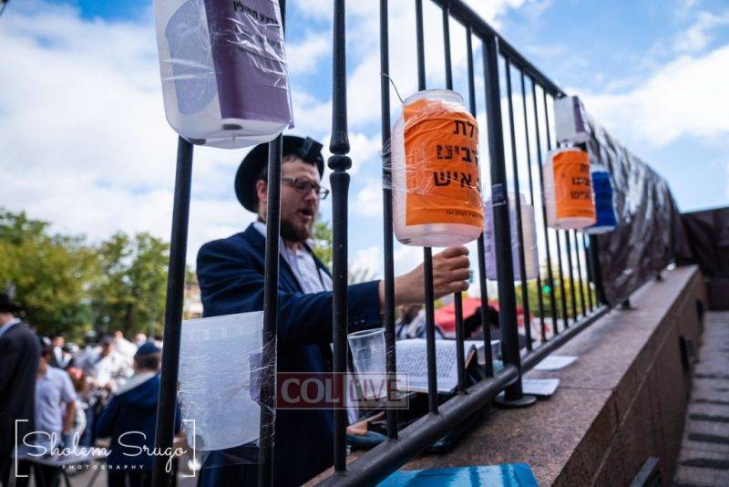 Residents and guests in Crown Heights were seen inside and outside of 770 Eastern Parkway on Erev Yom Kippur, Davening Shacharis, giving Tzedakah and receiving 'lekach.' Photos