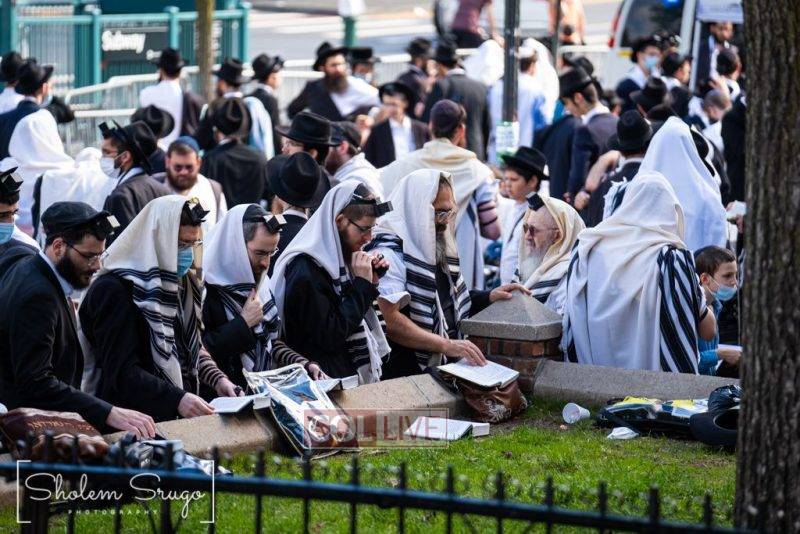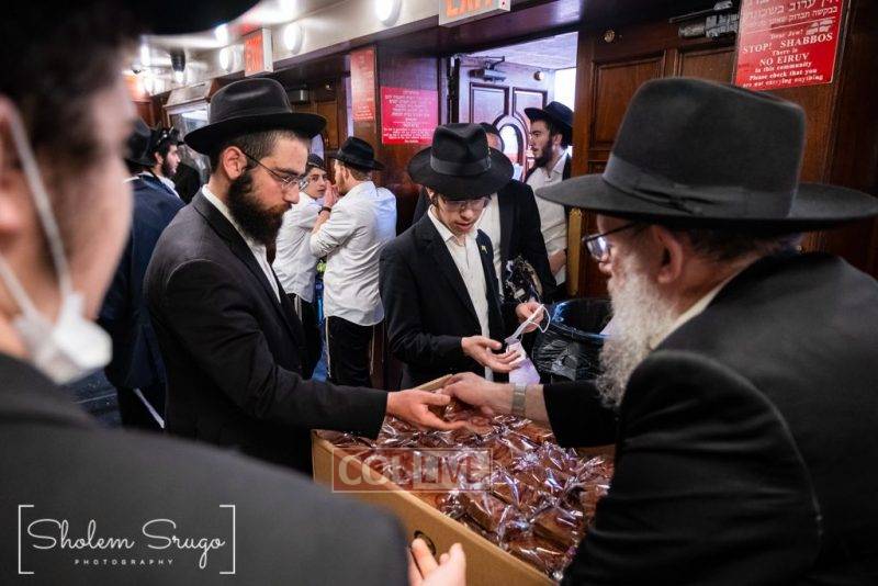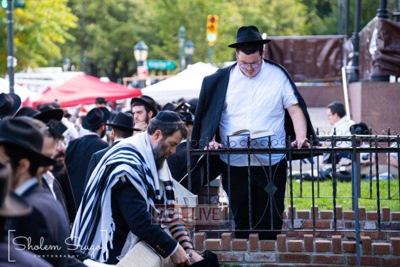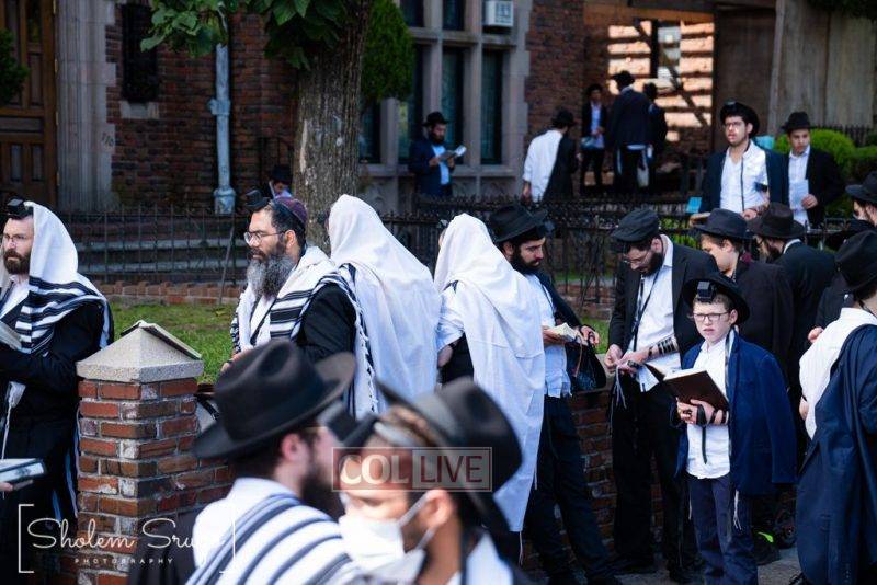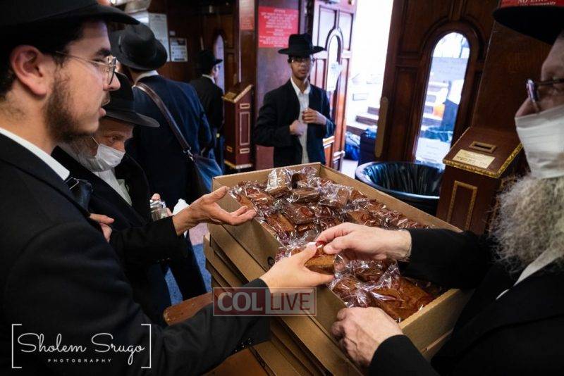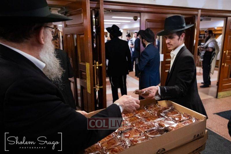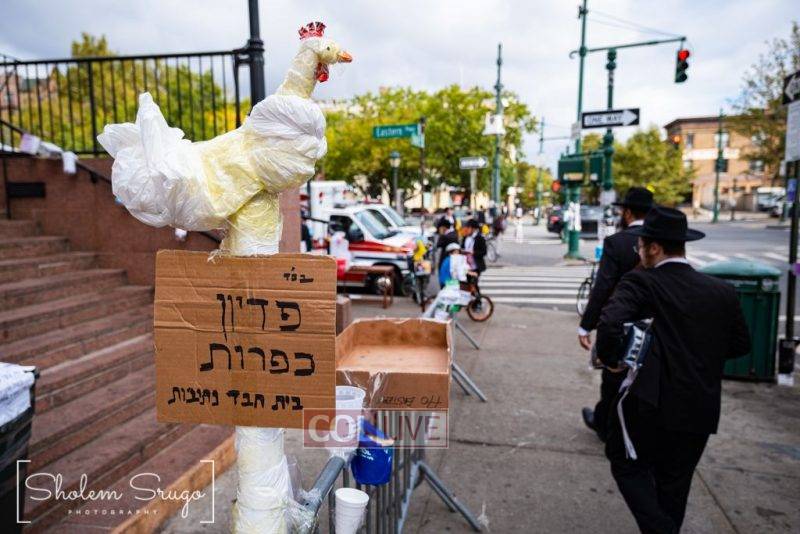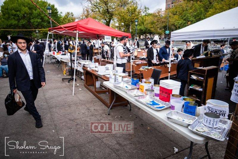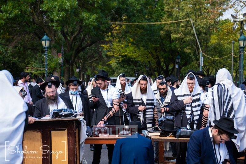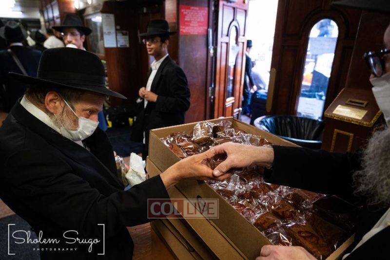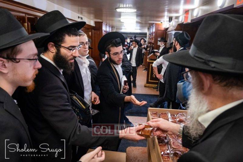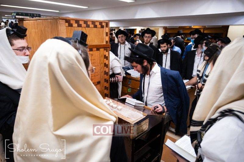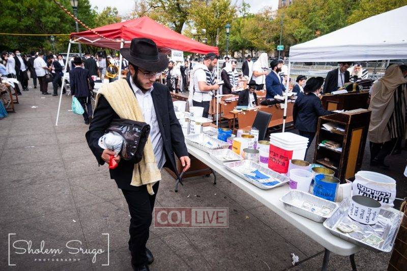 Residents and guests in Crown Heights were seen inside and outside of 770 Eastern Parkway on Erev Yom Kippur, Davening Shacharis, giving Tzedakah and receiving 'lekach.' Photos