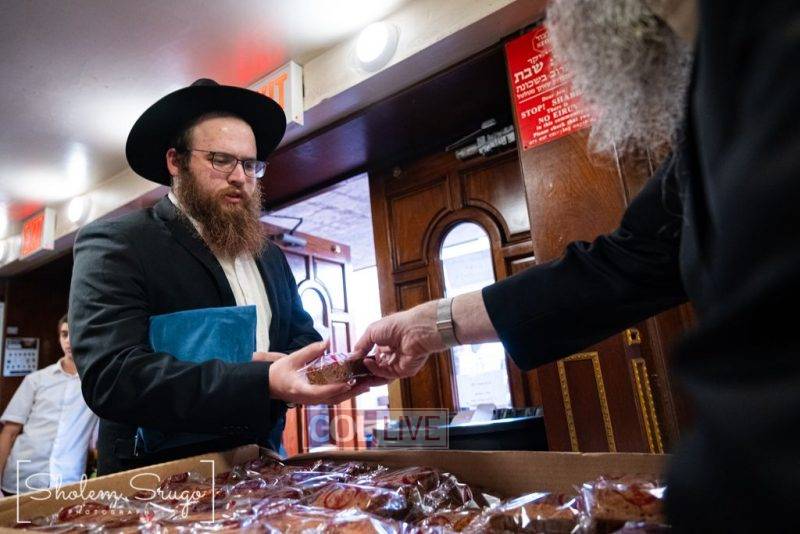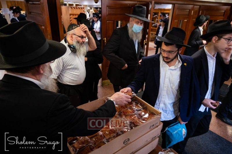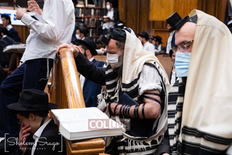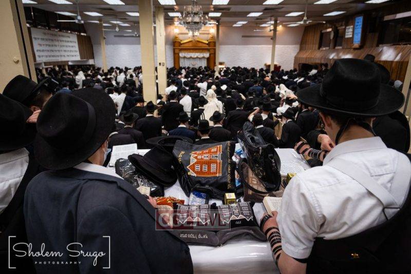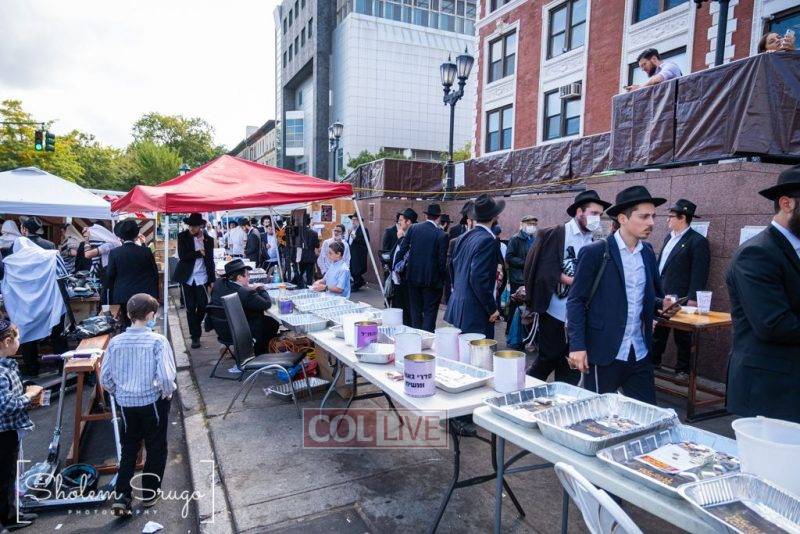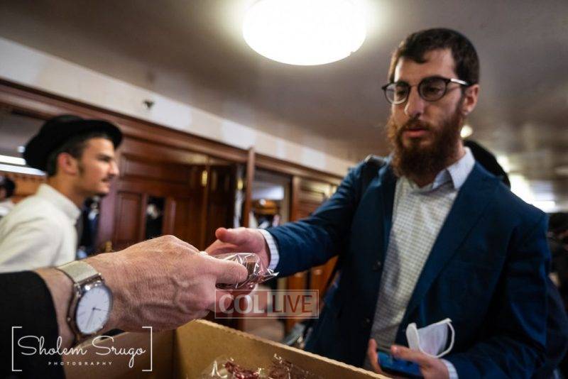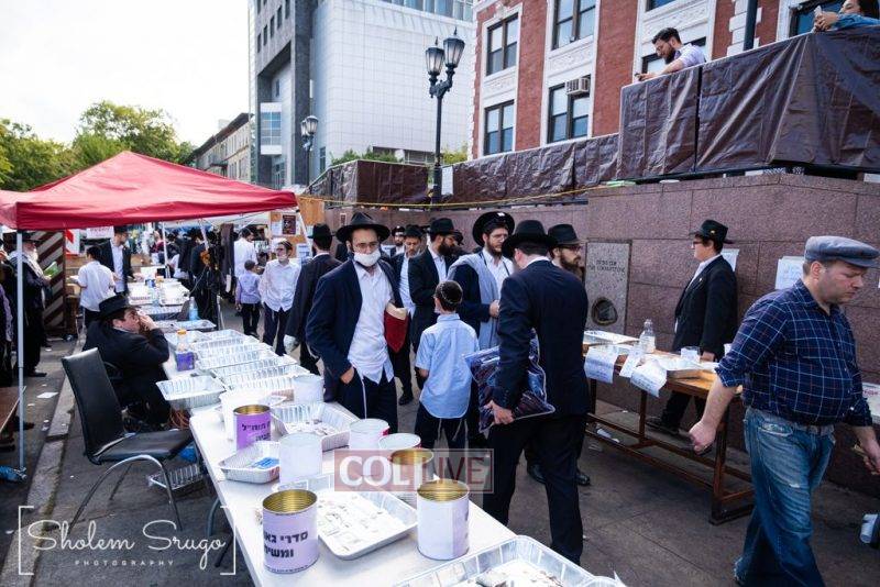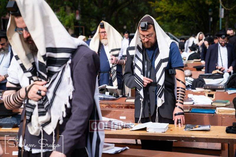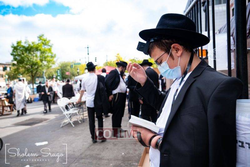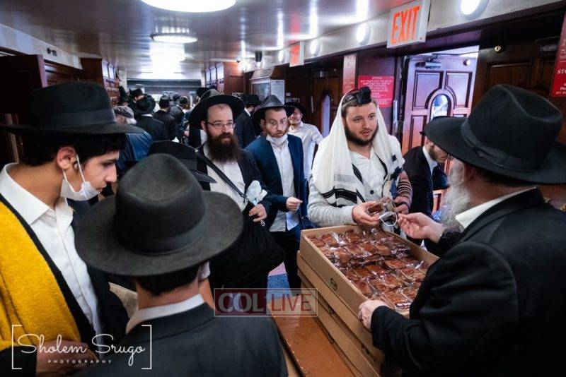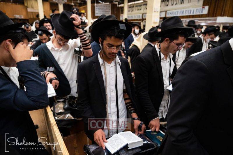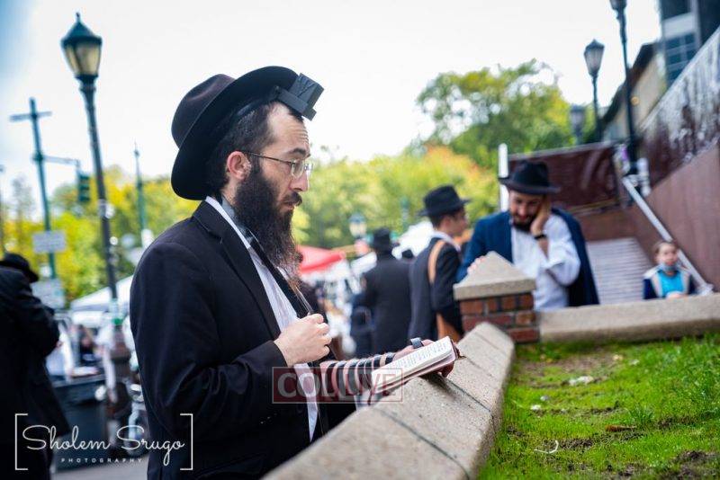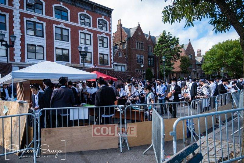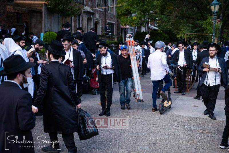 Residents and guests in Crown Heights were seen inside and outside of 770 Eastern Parkway on Erev Yom Kippur, Davening Shacharis, giving Tzedakah and receiving 'lekach.' Photos