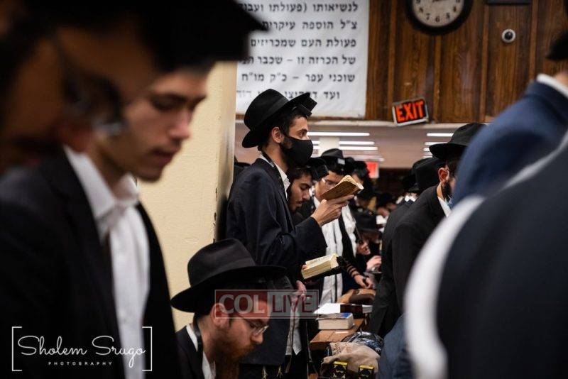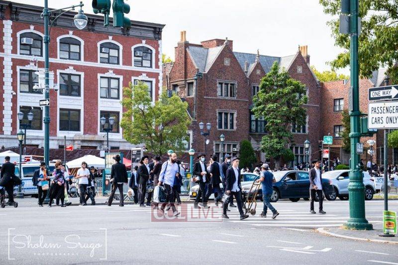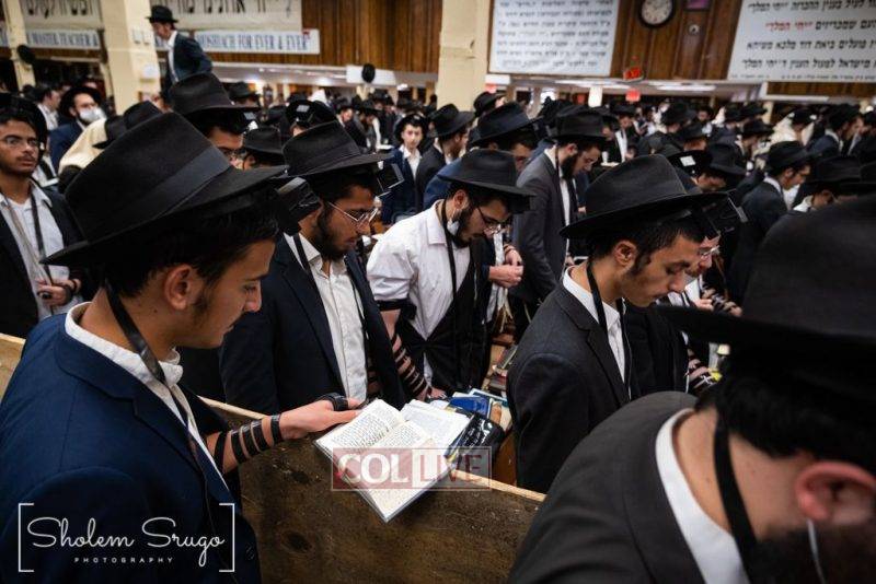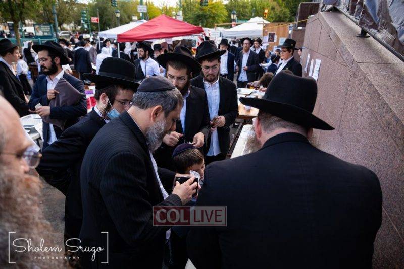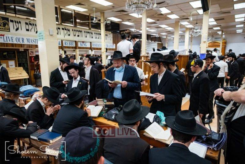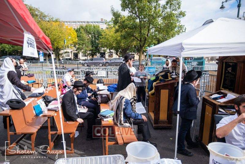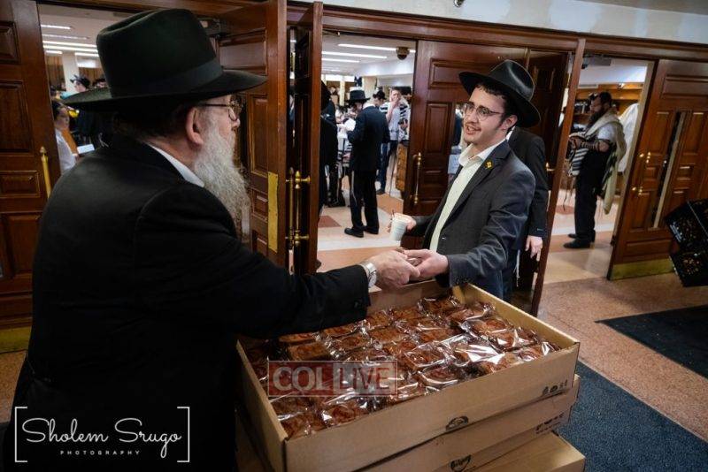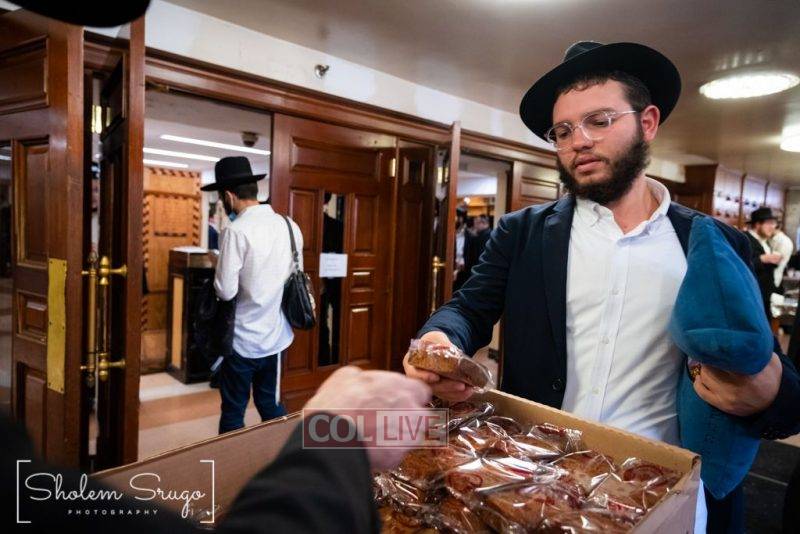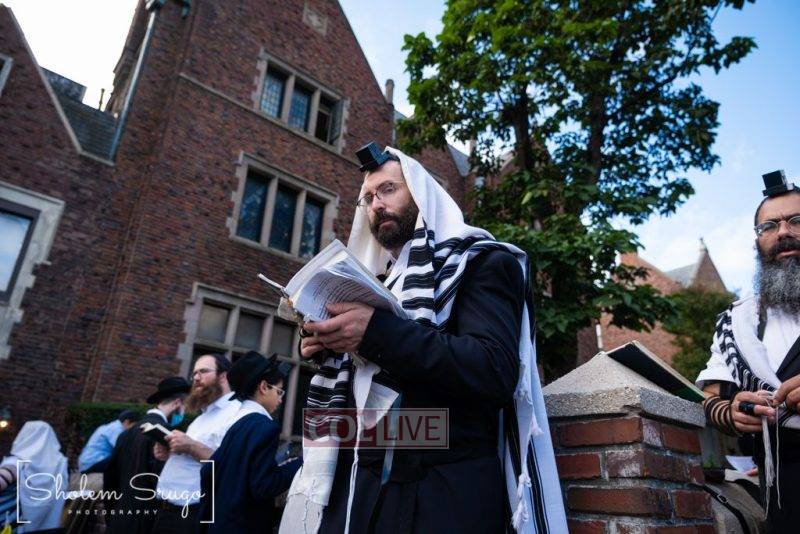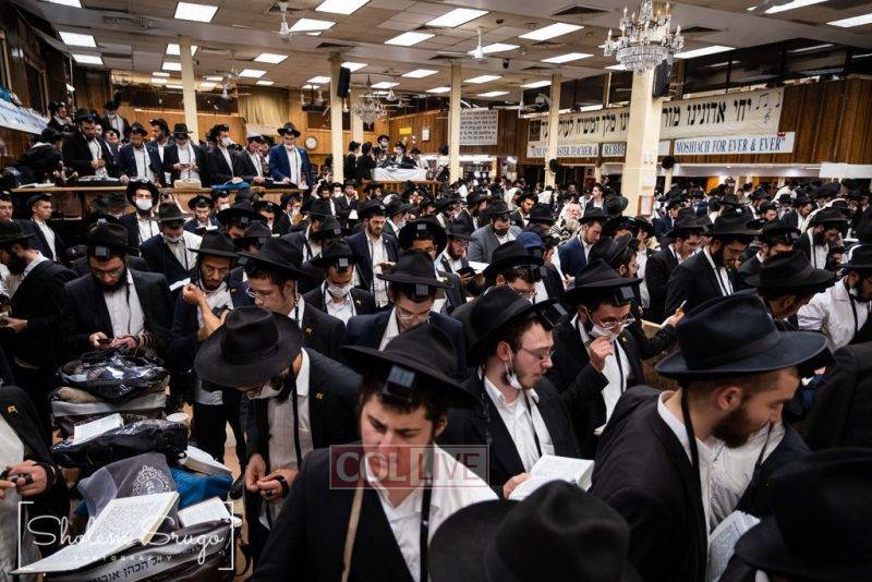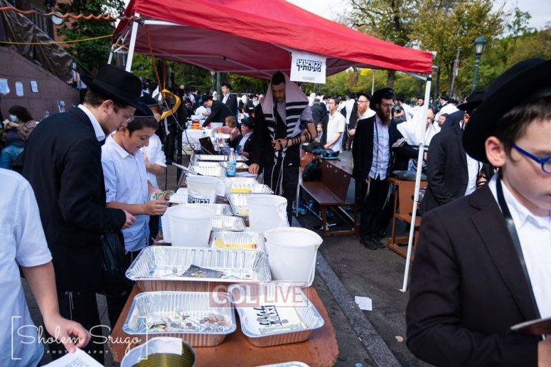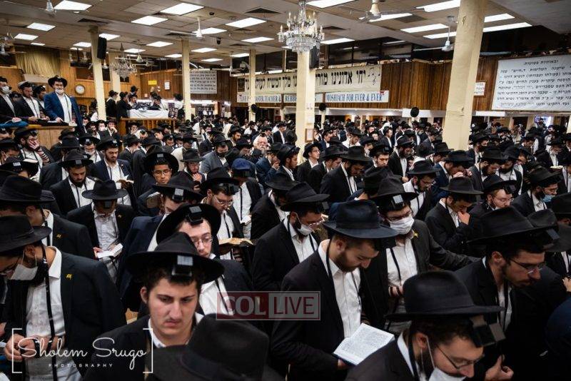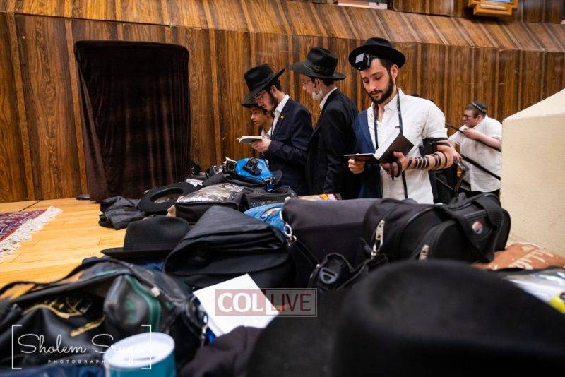 Residents and guests in Crown Heights were seen inside and outside of 770 Eastern Parkway on Erev Yom Kippur, Davening Shacharis, giving Tzedakah and receiving 'lekach.' Photos