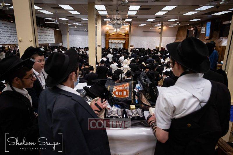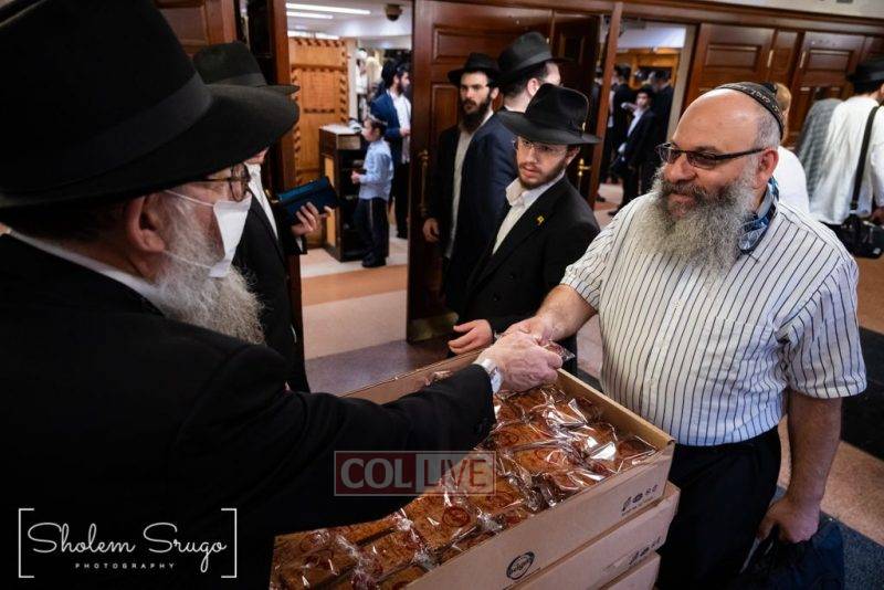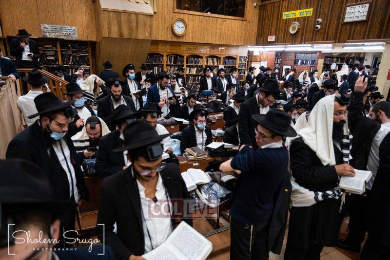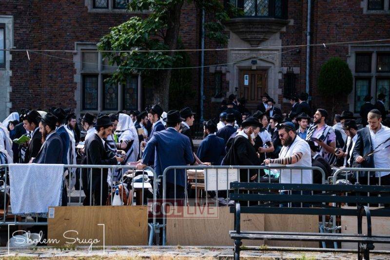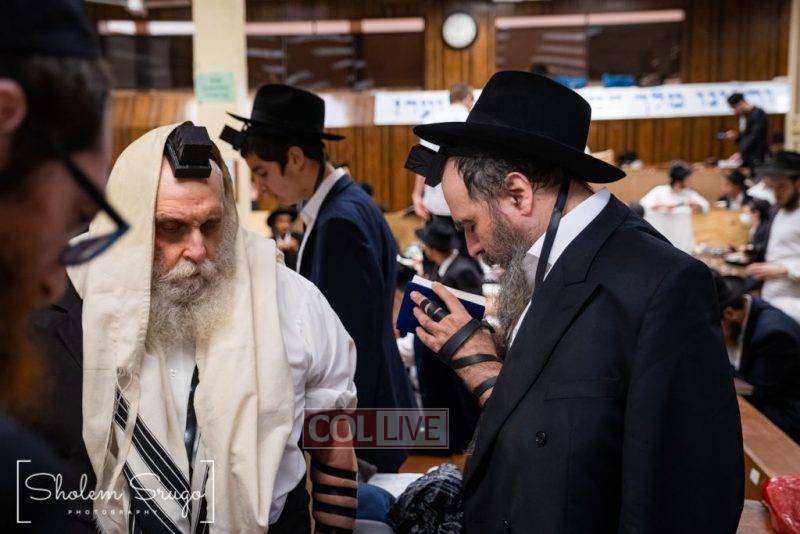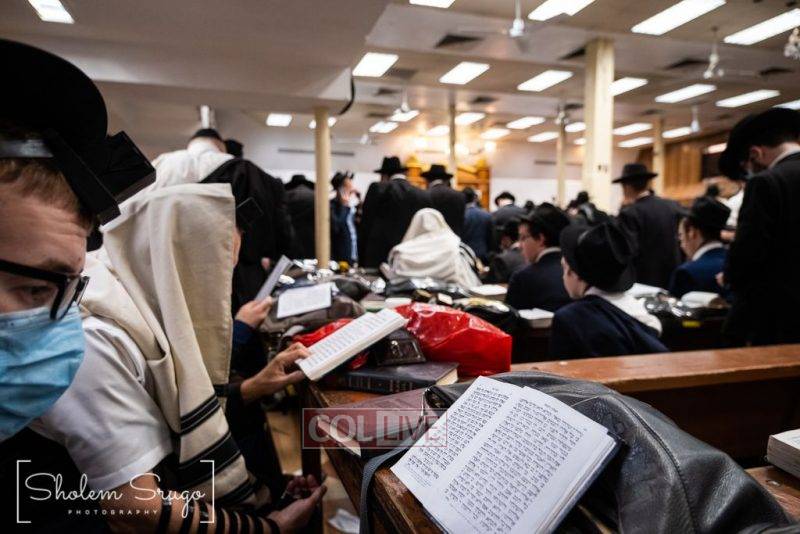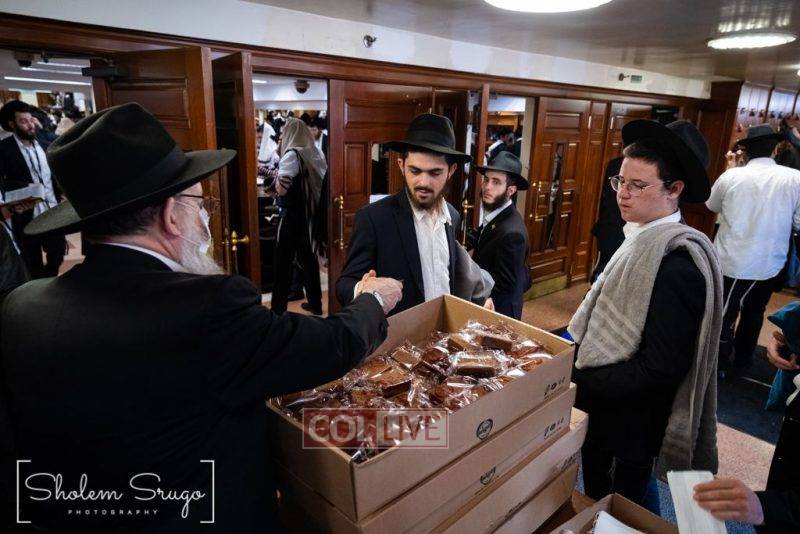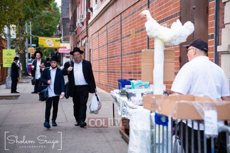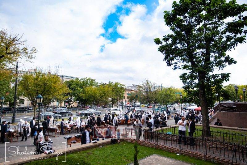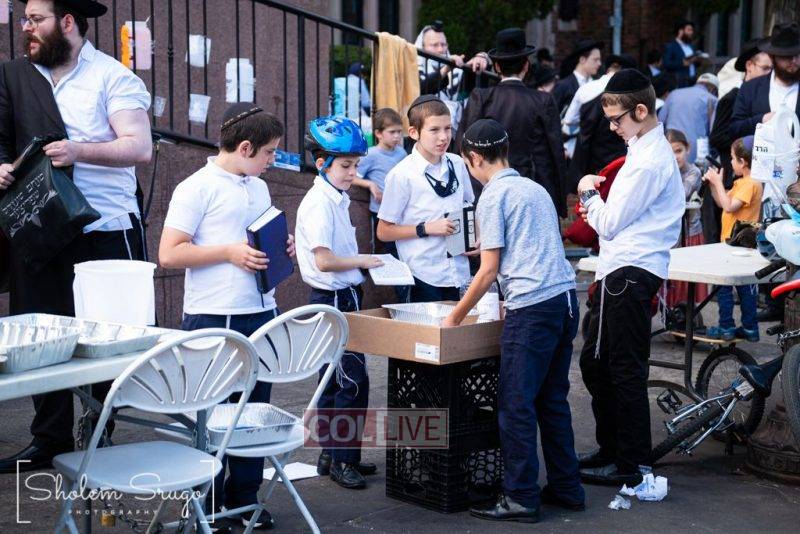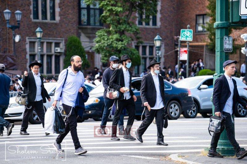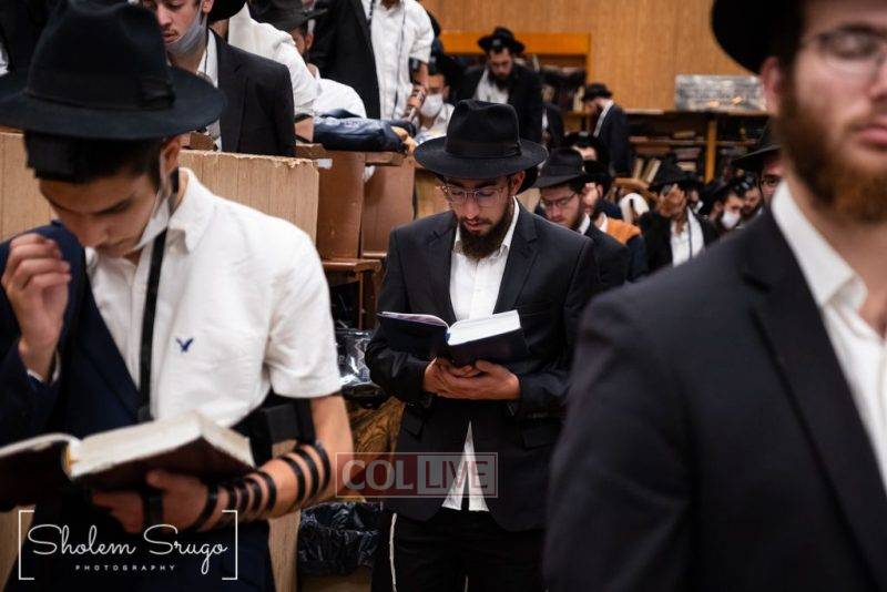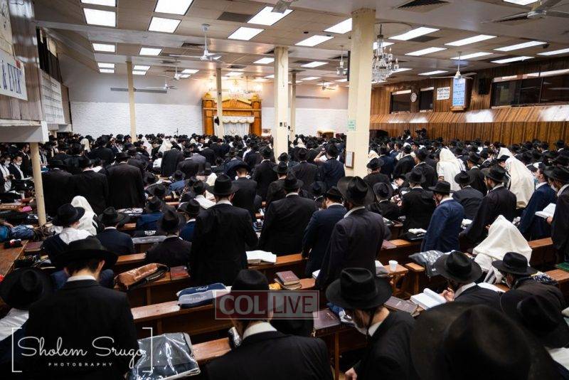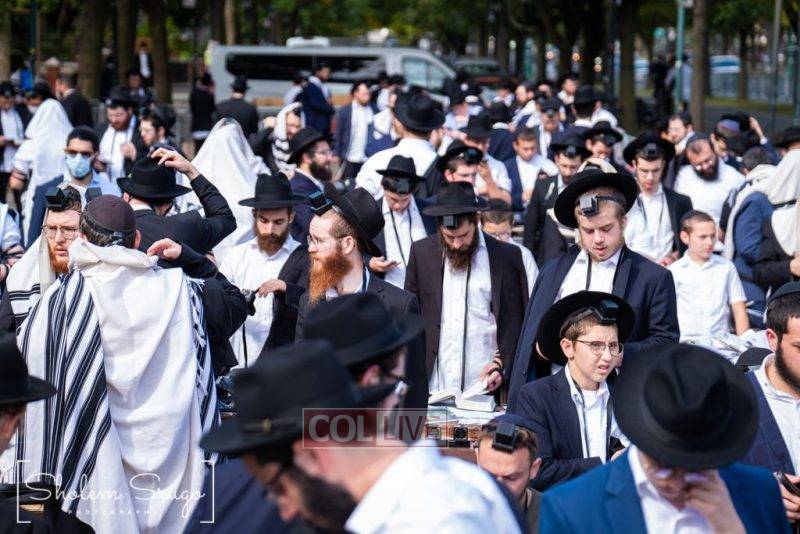 Residents and guests in Crown Heights were seen inside and outside of 770 Eastern Parkway on Erev Yom Kippur, Davening Shacharis, giving Tzedakah and receiving 'lekach.' Photos