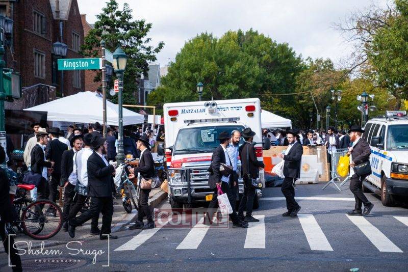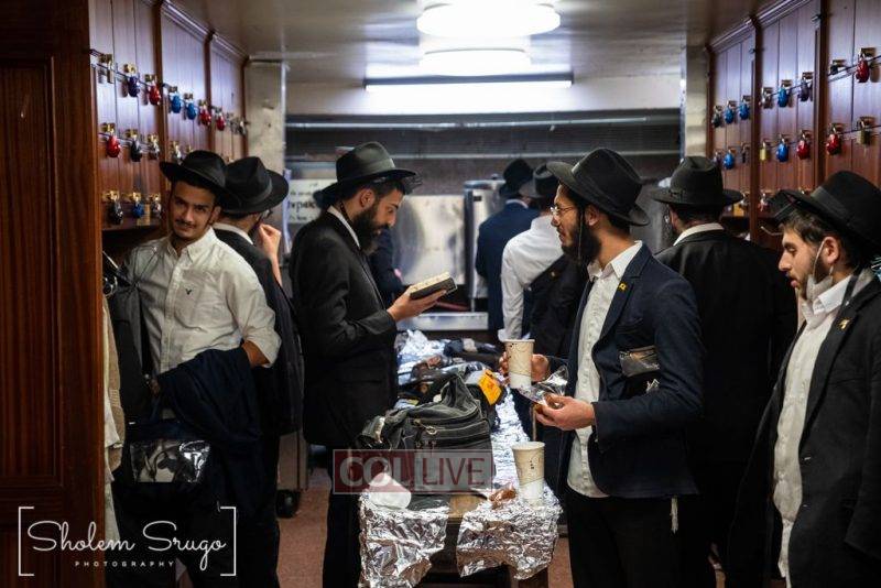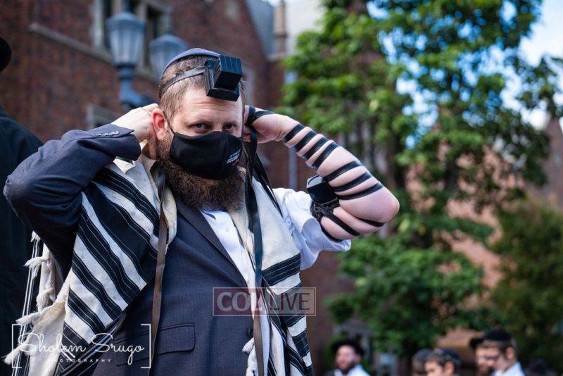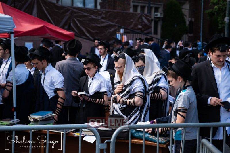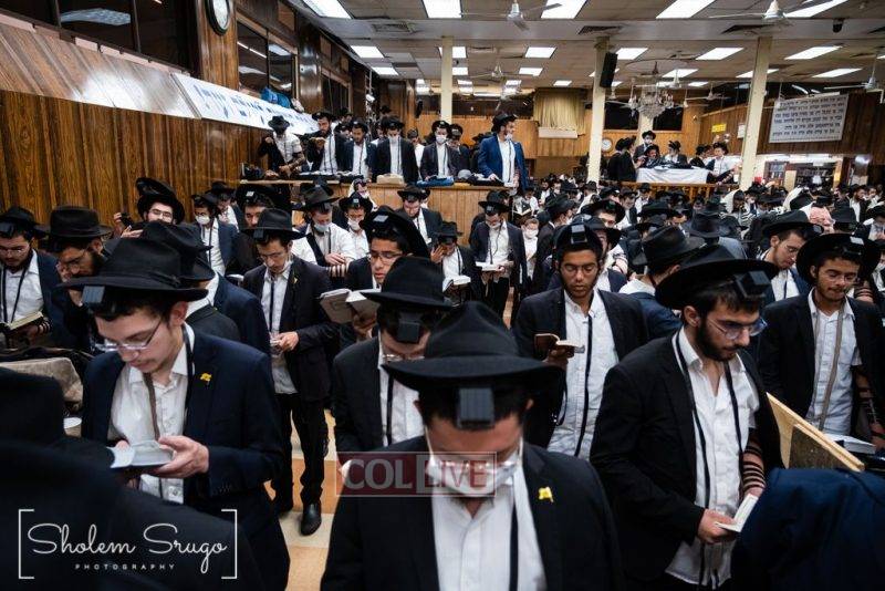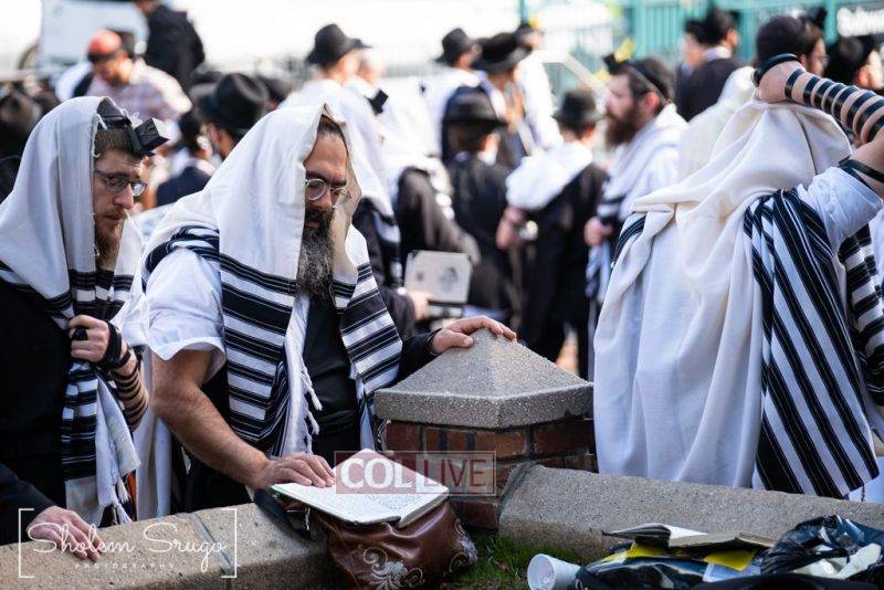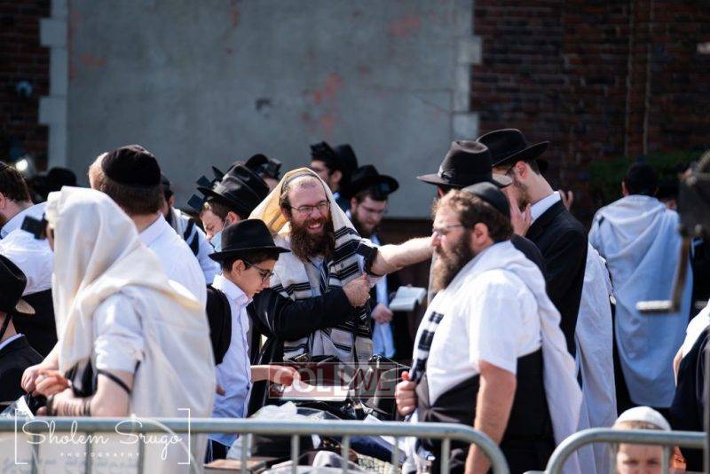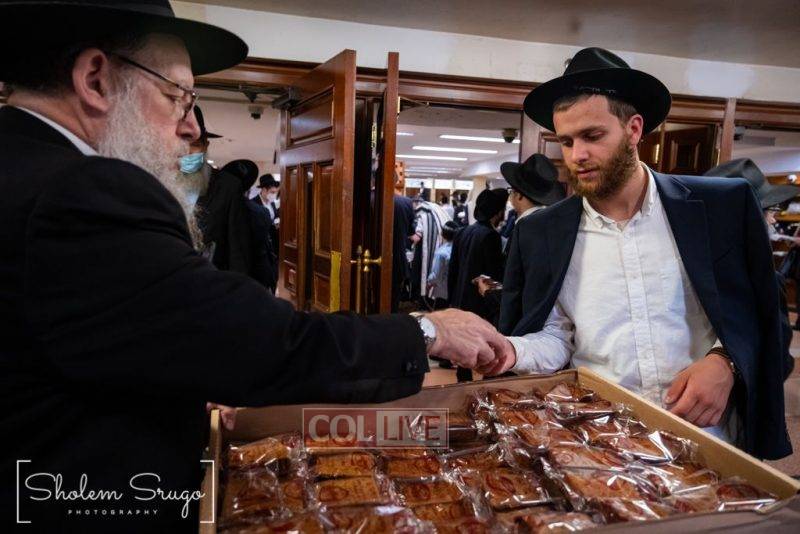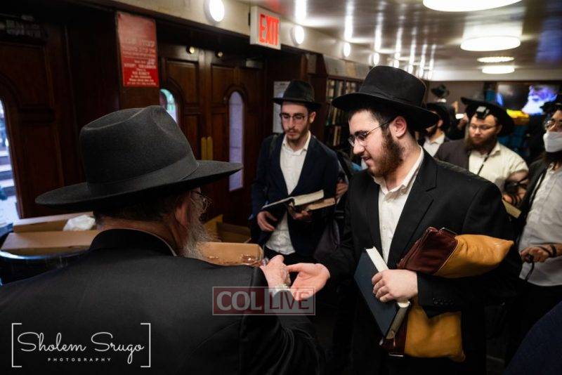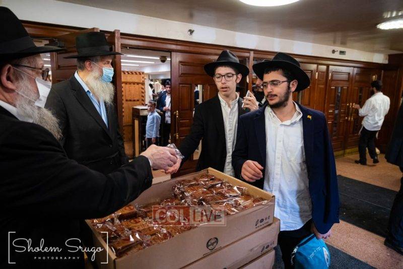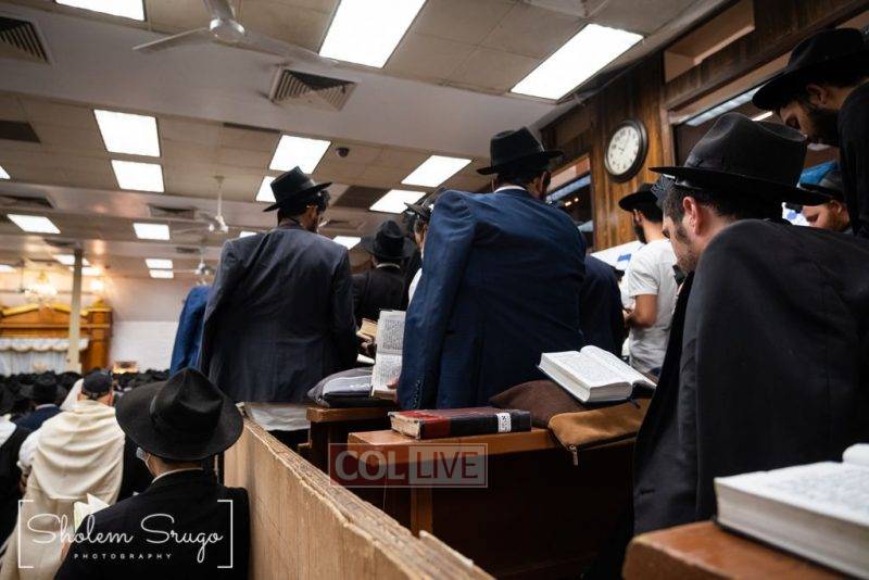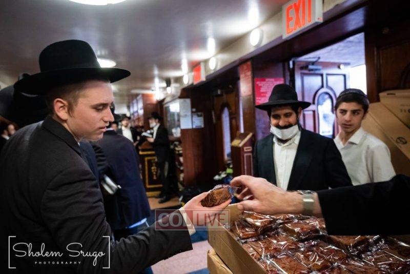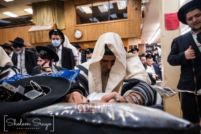 Residents and guests in Crown Heights were seen inside and outside of 770 Eastern Parkway on Erev Yom Kippur, Davening Shacharis, giving Tzedakah and receiving 'lekach.' Photos