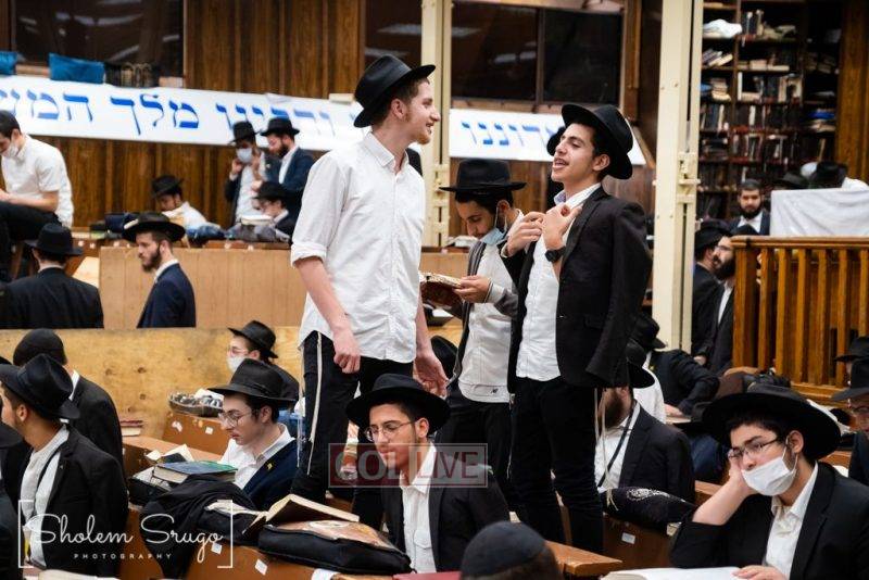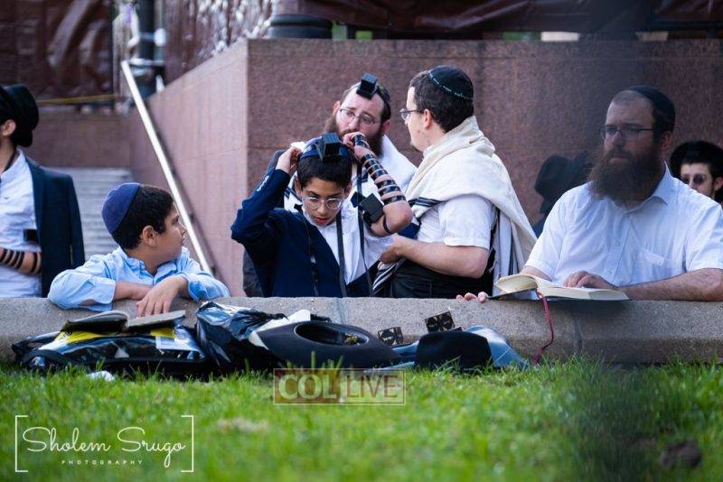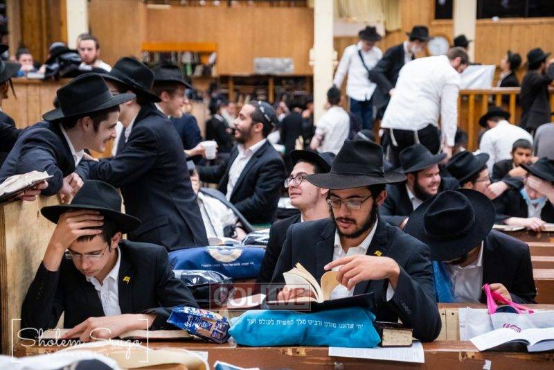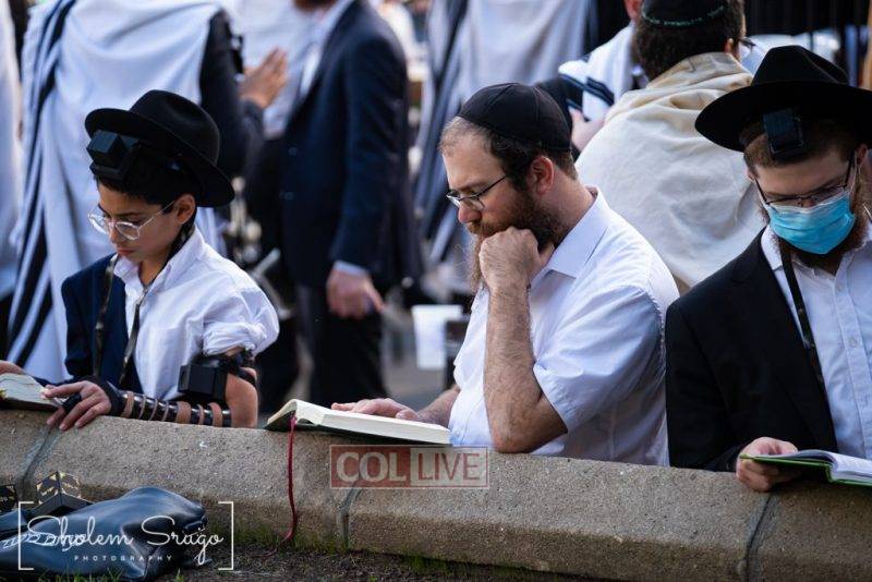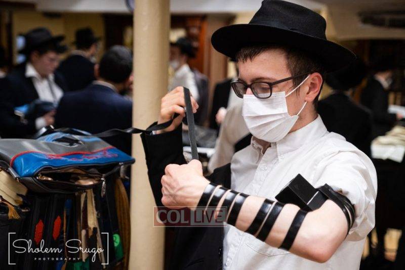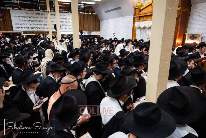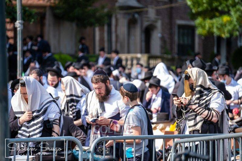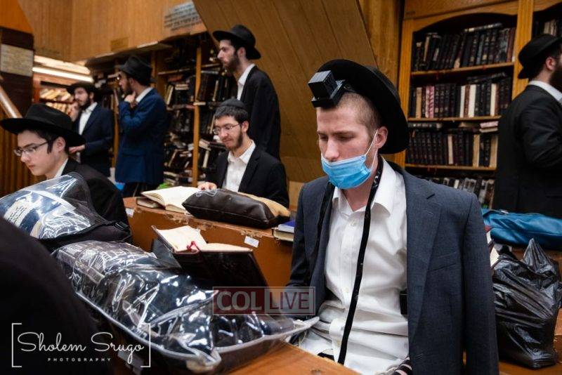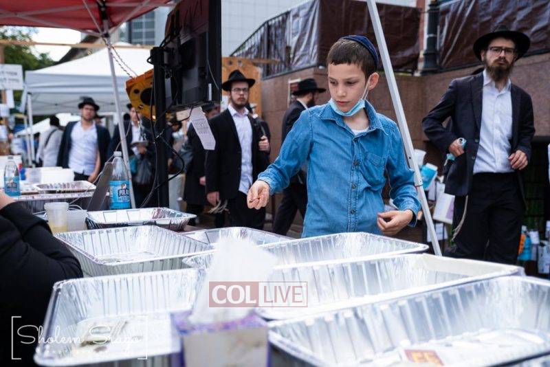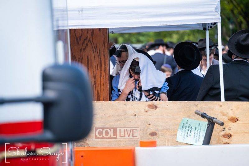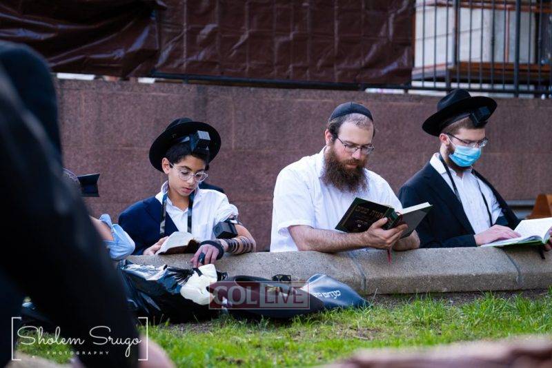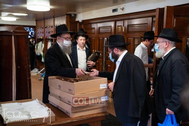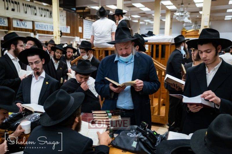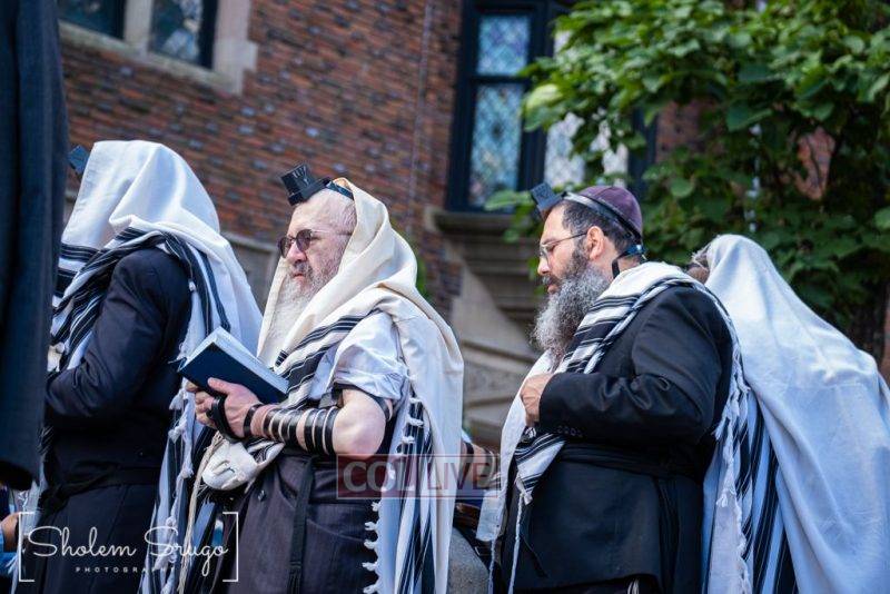 Residents and guests in Crown Heights were seen inside and outside of 770 Eastern Parkway on Erev Yom Kippur, Davening Shacharis, giving Tzedakah and receiving 'lekach.' Photos
