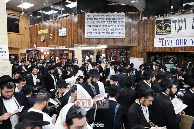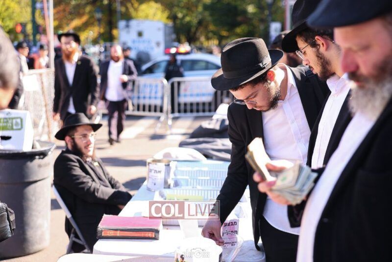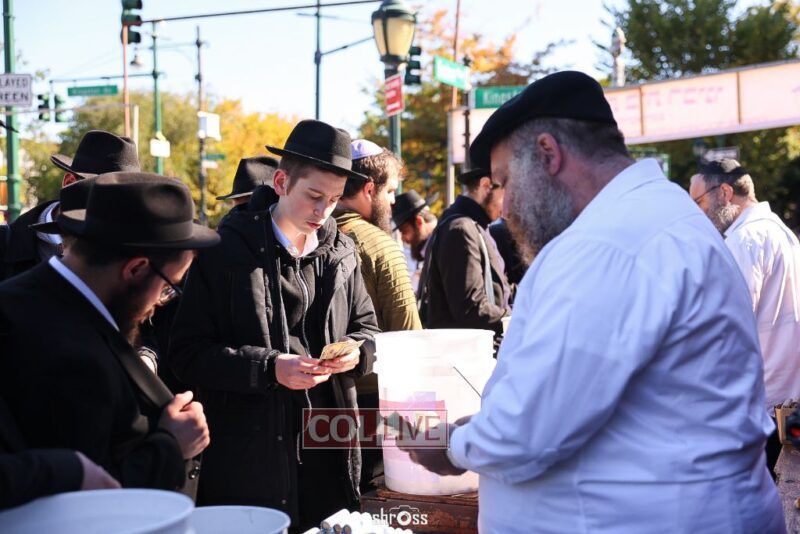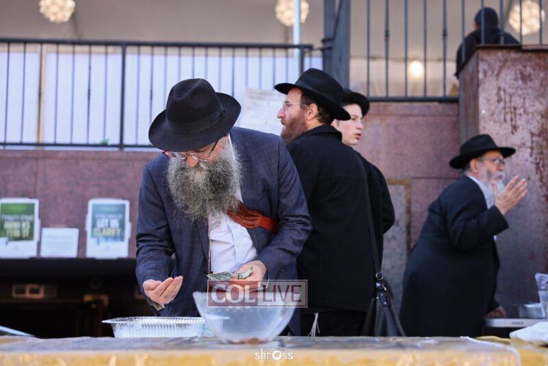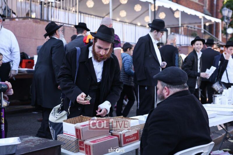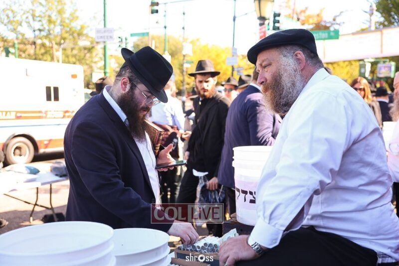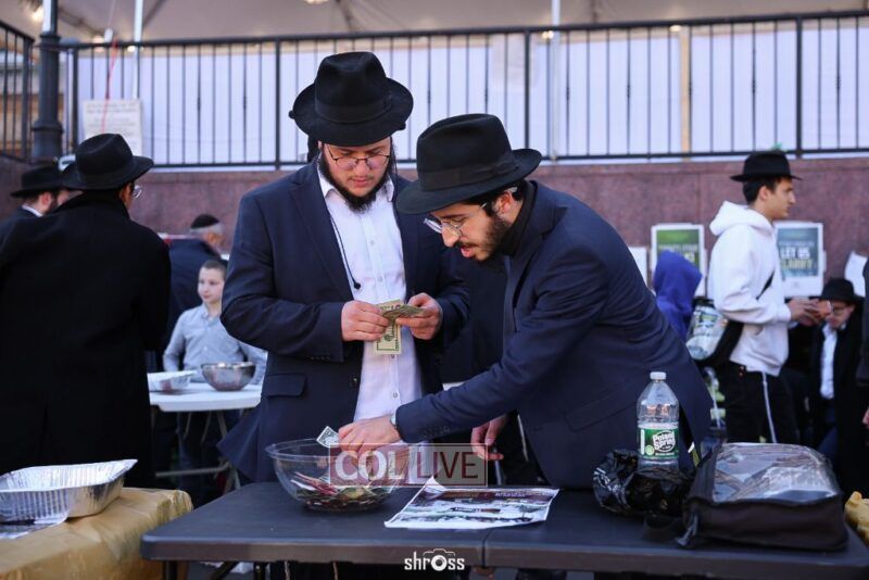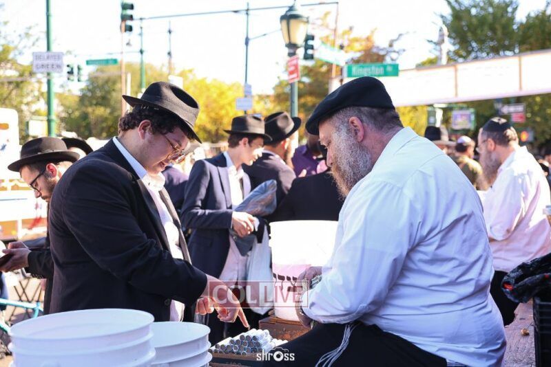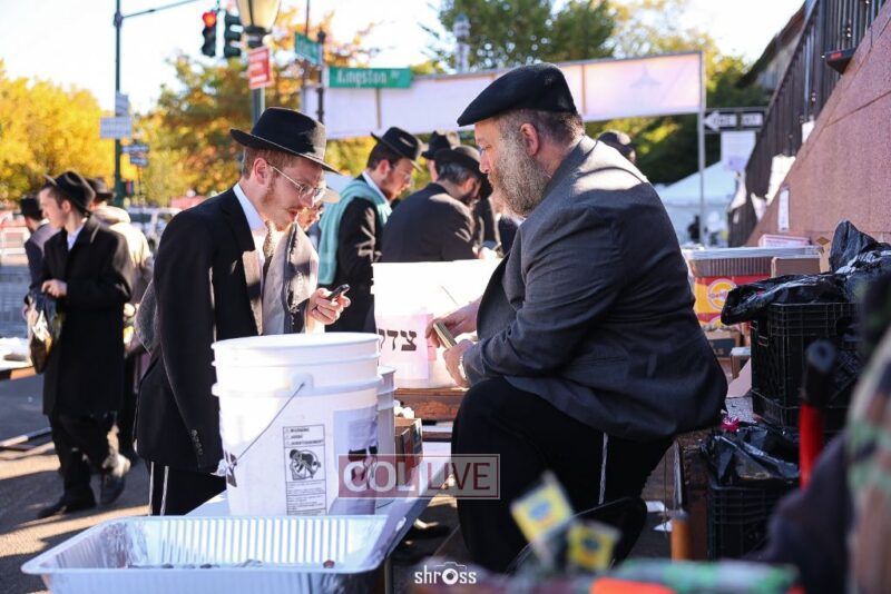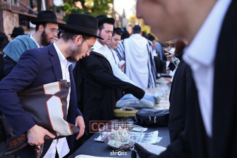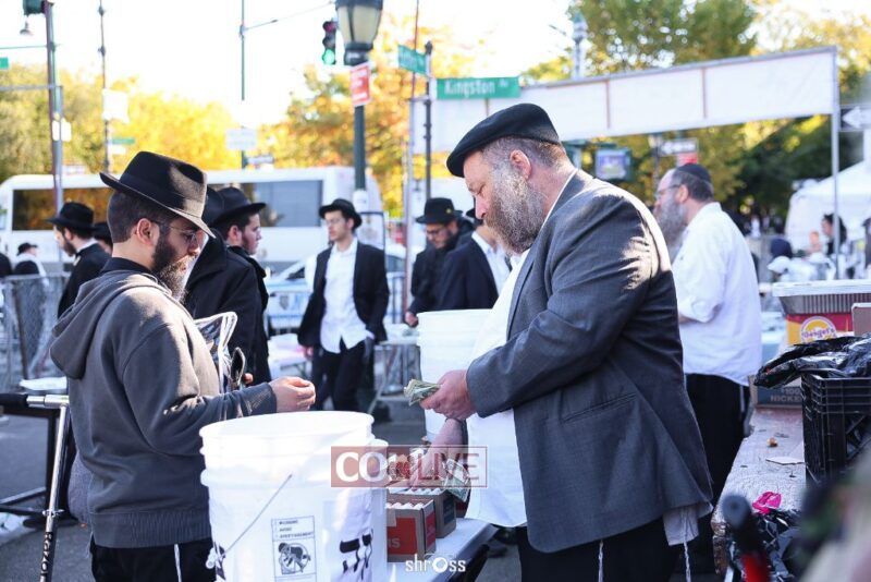 Residents and guests in Crown Heights were seen inside and outside of 770 Eastern Parkway on Erev Yom Kippur, Davening Shacharis and giving Tzedakah. Photos