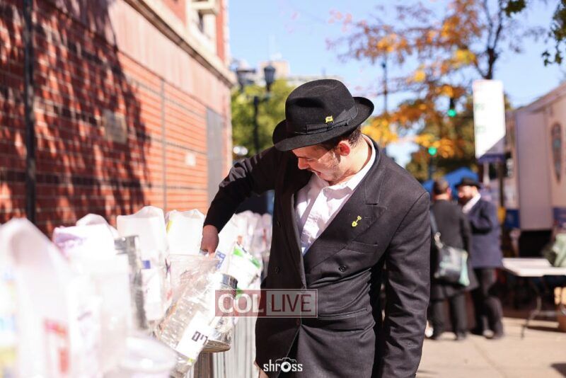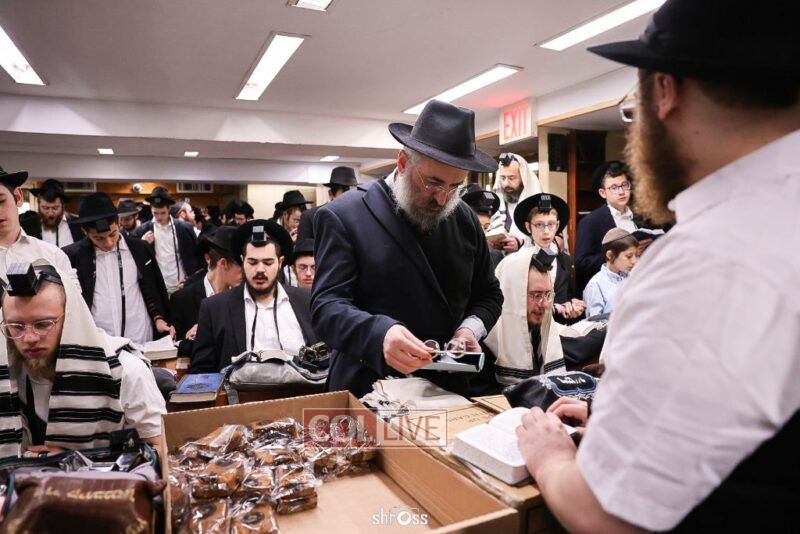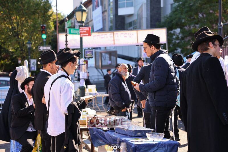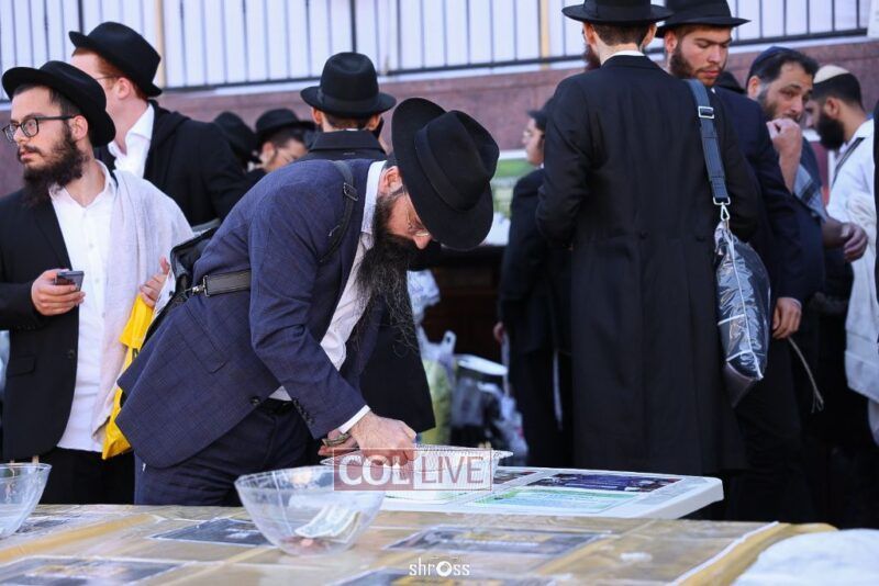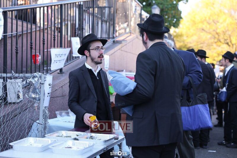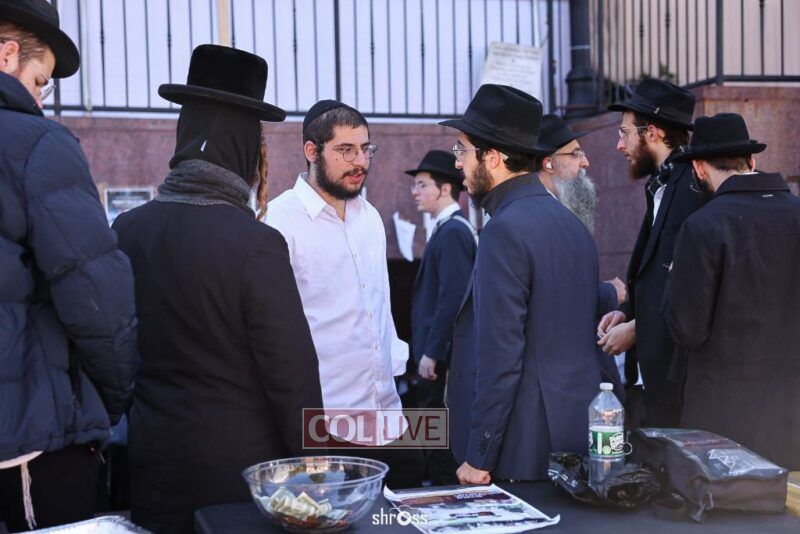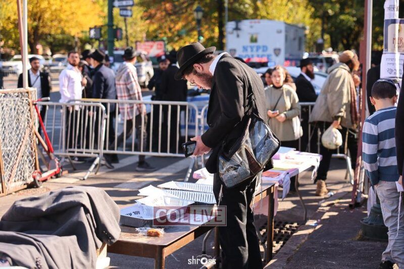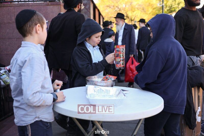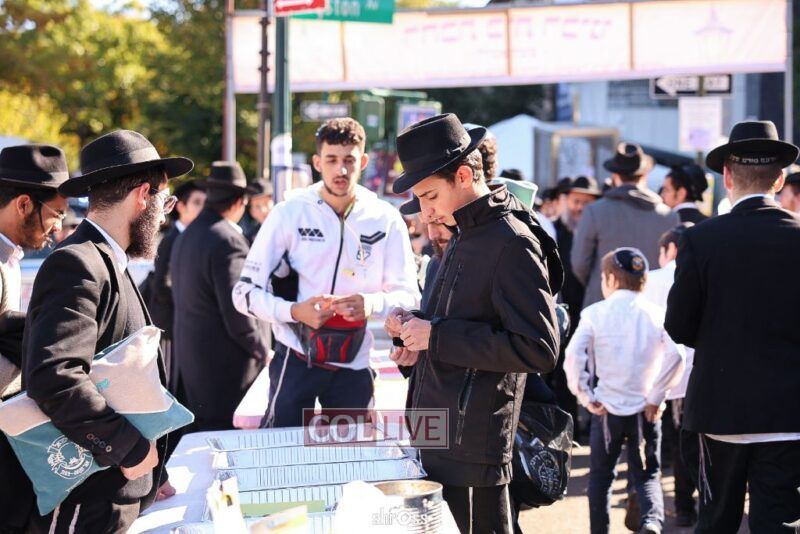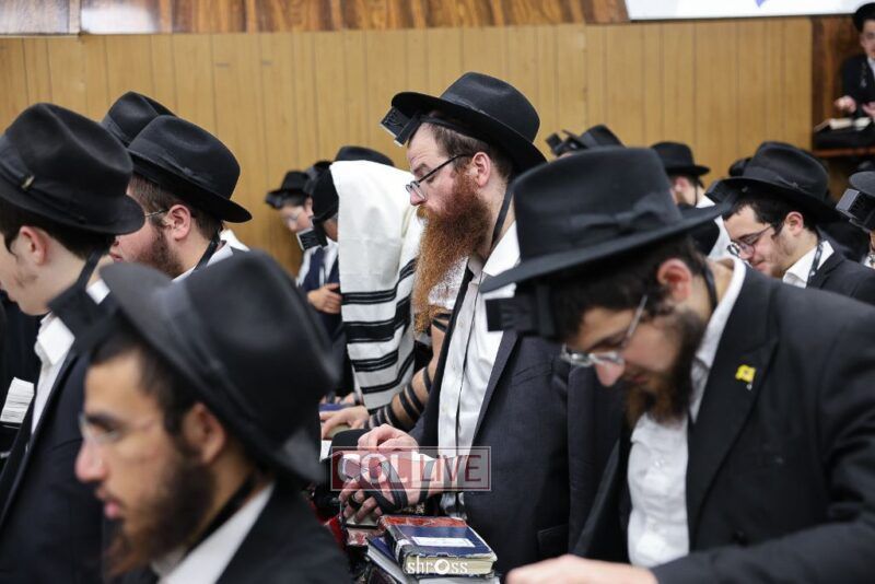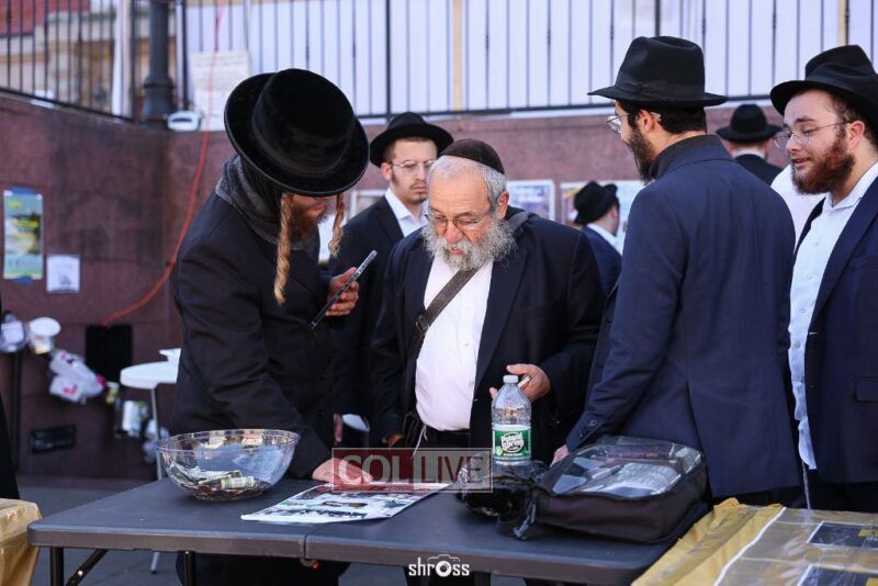 Residents and guests in Crown Heights were seen inside and outside of 770 Eastern Parkway on Erev Yom Kippur, Davening Shacharis and giving Tzedakah. Photos