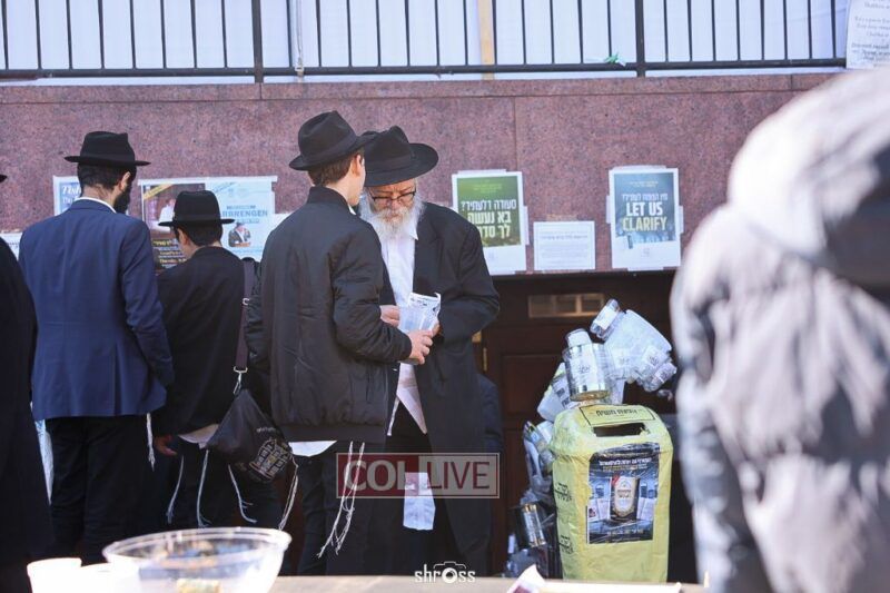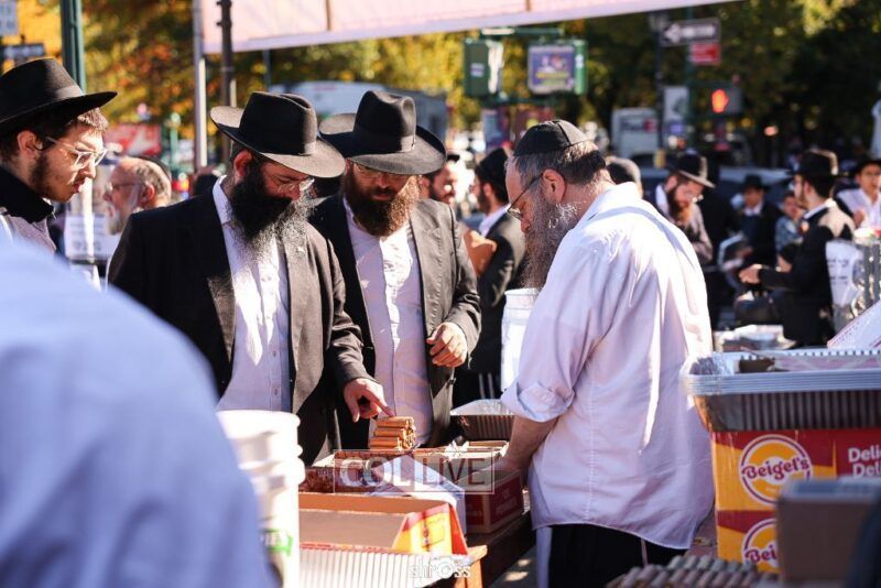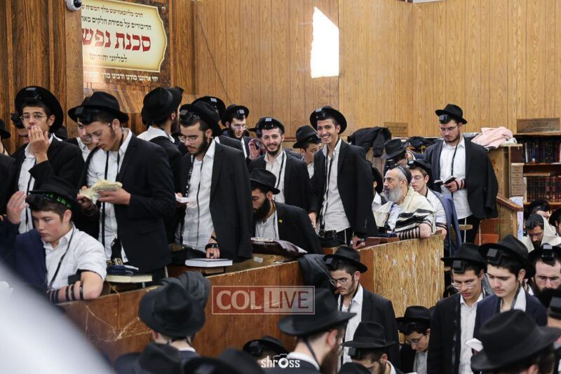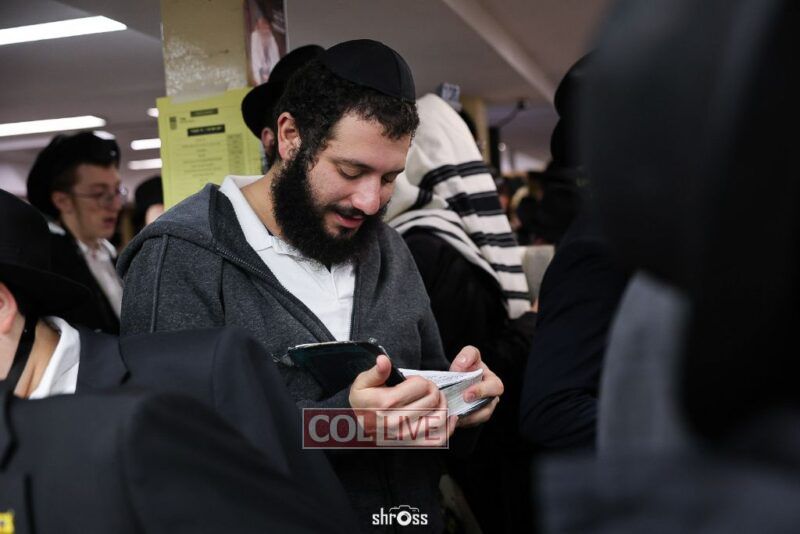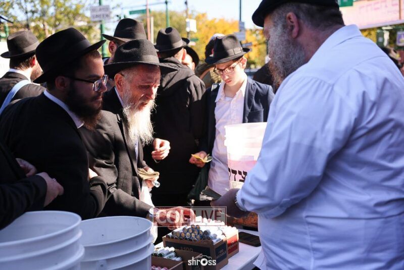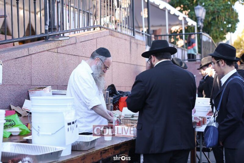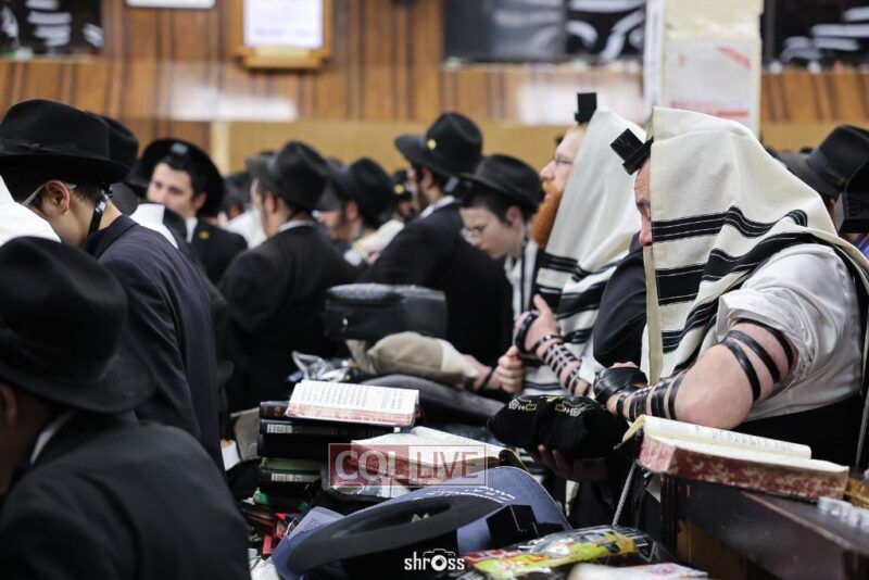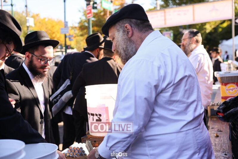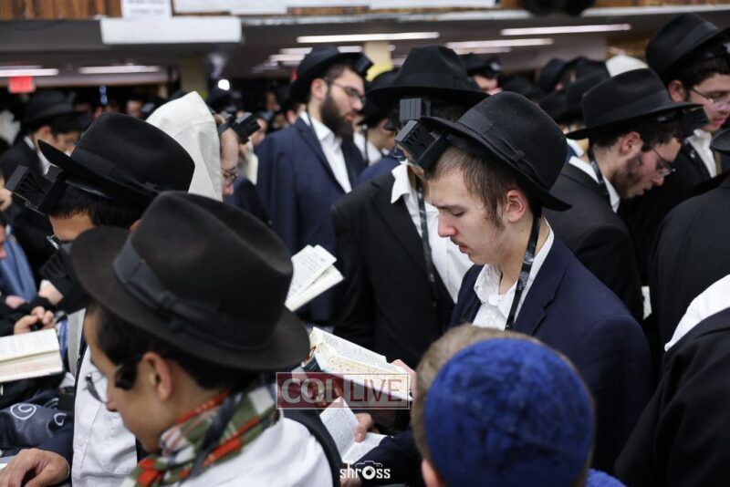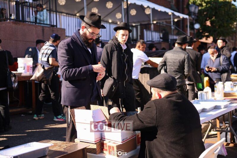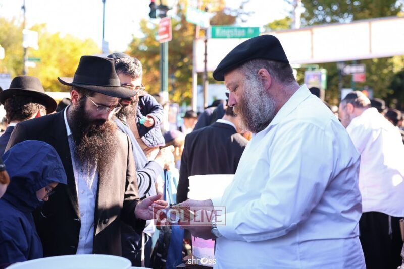 Residents and guests in Crown Heights were seen inside and outside of 770 Eastern Parkway on Erev Yom Kippur, Davening Shacharis and giving Tzedakah. Photos