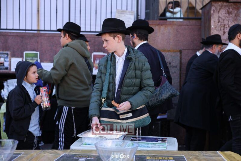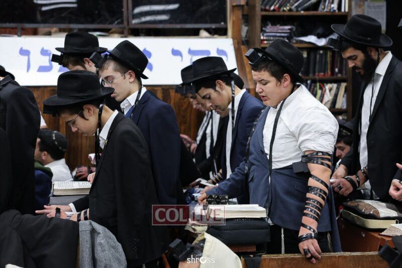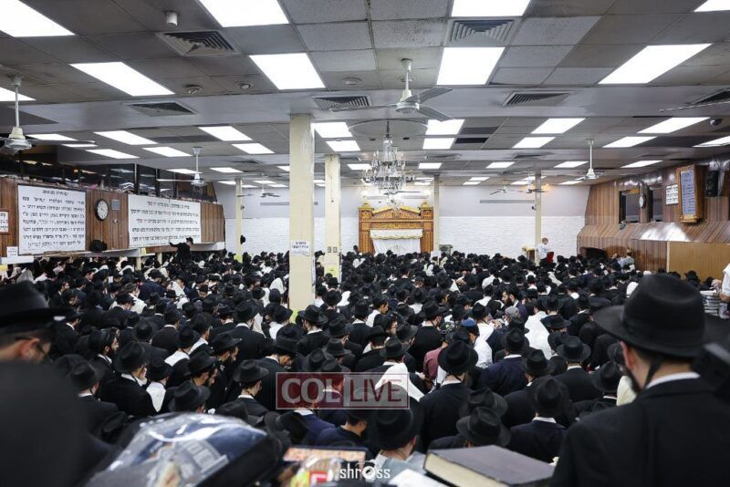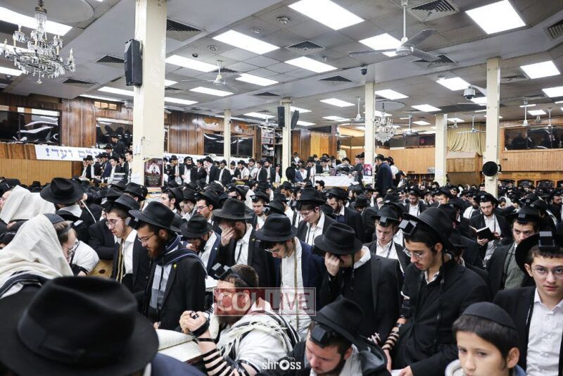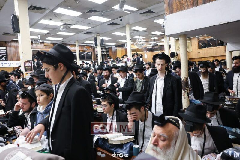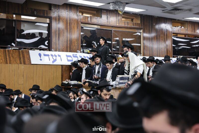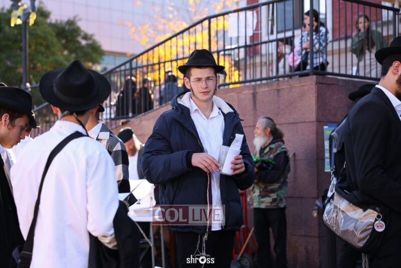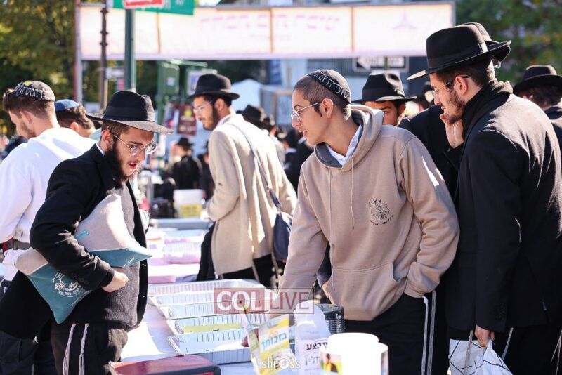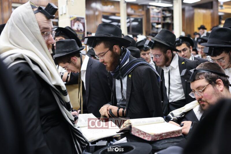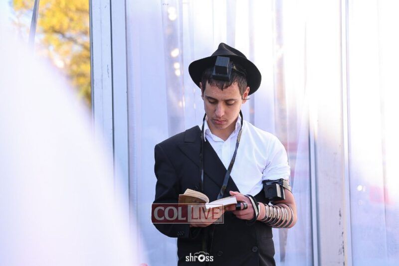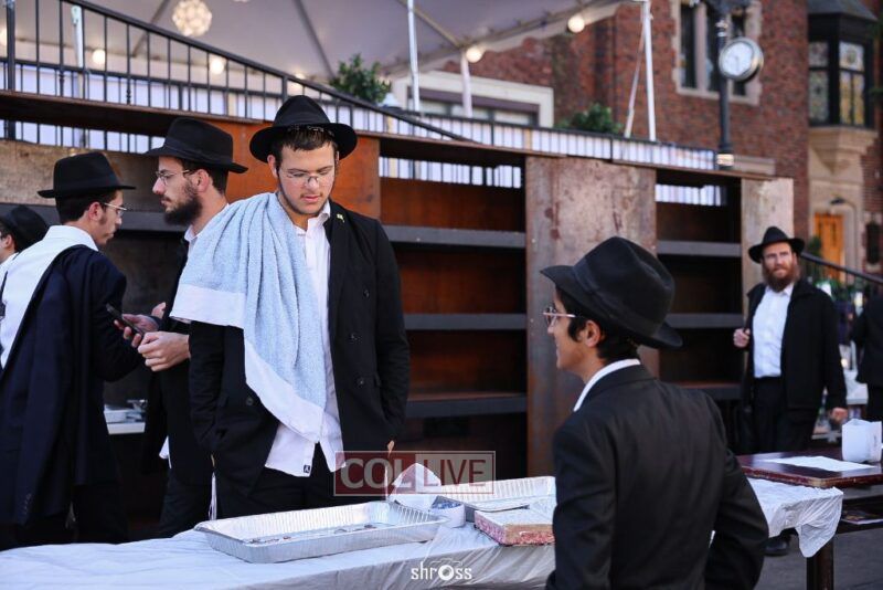 Residents and guests in Crown Heights were seen inside and outside of 770 Eastern Parkway on Erev Yom Kippur, Davening Shacharis and giving Tzedakah. Photos