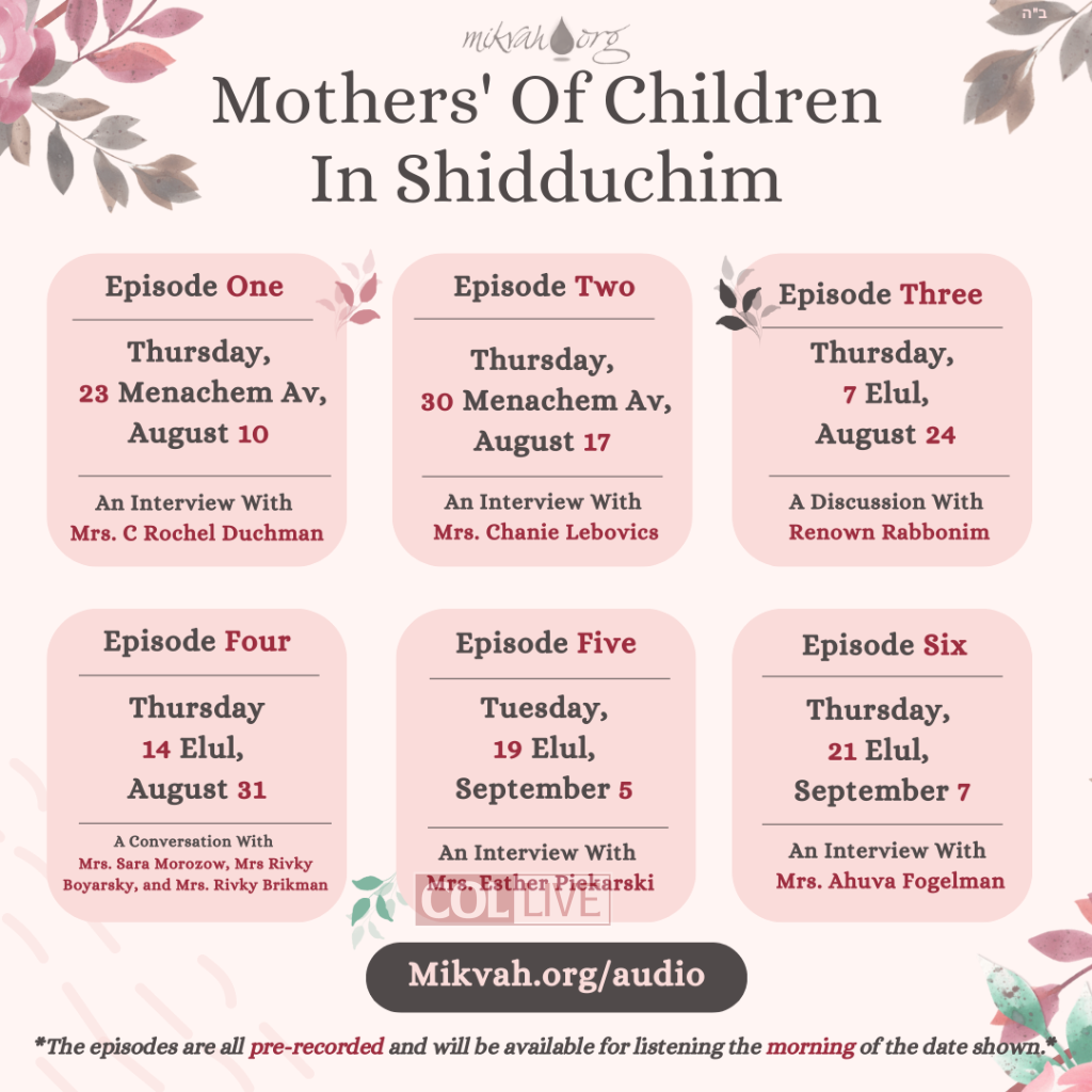 If you’ve missed any of the earlier episodes in the Mothers of Children in Shidduchim Podcast Series, click here to listen now!