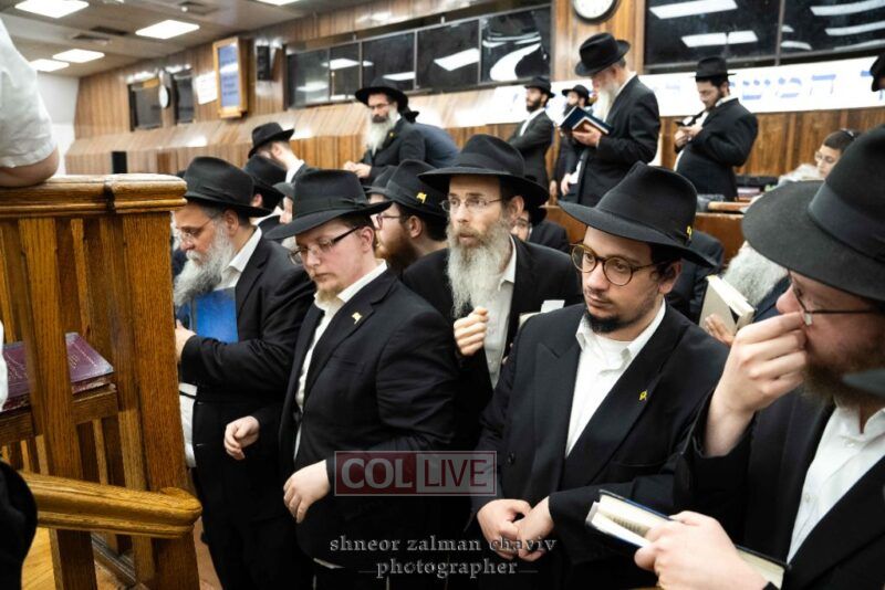 A crowd gathered for Mincha prayers at the Main Shul of 770 Eastern Parkway on Thursday, Shiva Asar B'Tammuz. Photos, Video