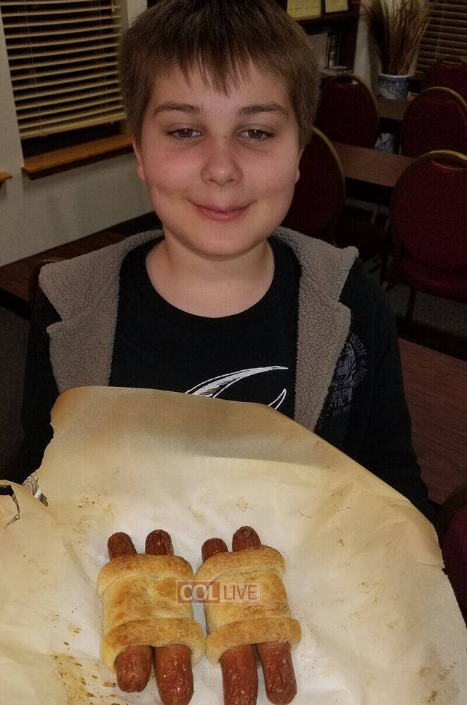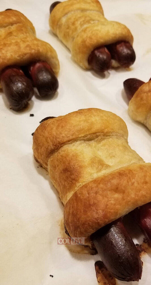 It combines hotdogs and puff pastry to create “hot dogs in blankets” in the shape of a Torah scroll with its parchment and 2 wood shafts. Rabbi Burston said it is “a treat popular in our Chabad House.”