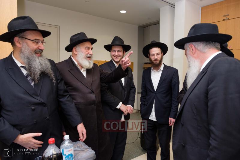After the many hours of Farbrengen, Rabbi Gurary gave a Pirkei Avos Shiur at the local Khal Chassidim Shul where 70 yungerleit were assembled. While it started with a mishna, the speech soon turned into a short chasidishe Farbrengen about the Rebbe.