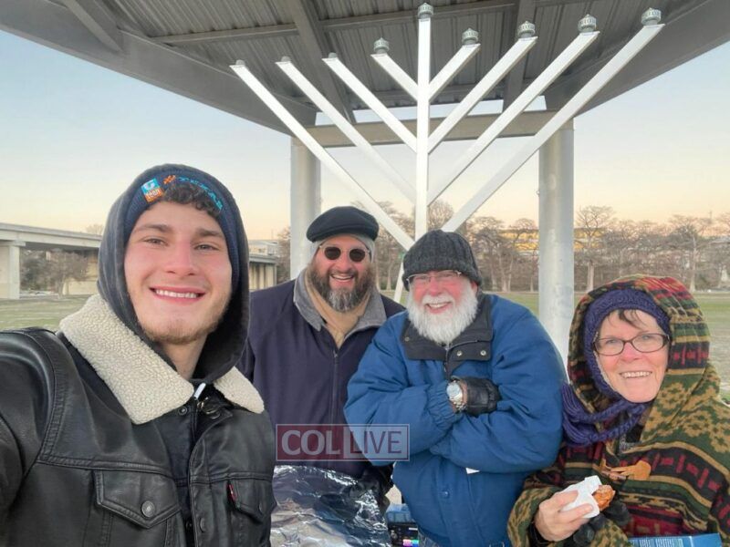 The first and second menorah lightings were great successes, each with their own large crowd. The third event was on the night of an Arctic blast. As my son Sholom and I drove to our destination, deep in the Texas Hill Country, we watched the temperature gauge drop into the single digits. The wind howled around us, and we bundled up as best we could. We didn’t think anyone would show up in the freezing cold, but we set up the menorah and waited. The menorah shook in the gusts of wind, and the ladder kept blowing over.