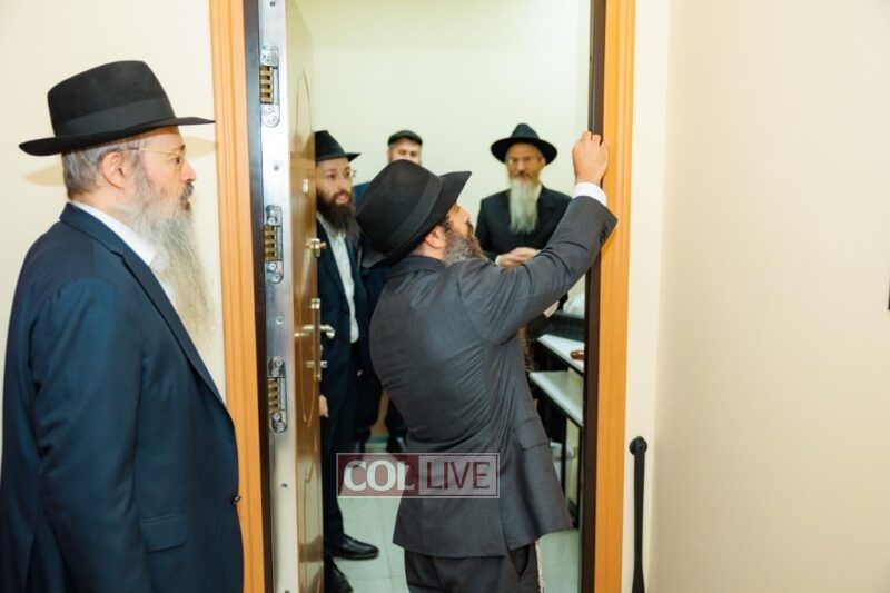 At the mezuzah-affixing ceremony participated the Chief Rabbi of Russia and head Shliach, Rabbi Berel Lazar; the CEO of the Federation of Jewish Communities, Shliach Rabbi Dovid Mondshine; and philanthropist R’ Yehuda Davidov, who is devoted and dedicated to the needs of the Rebbe’s Shluchim.
