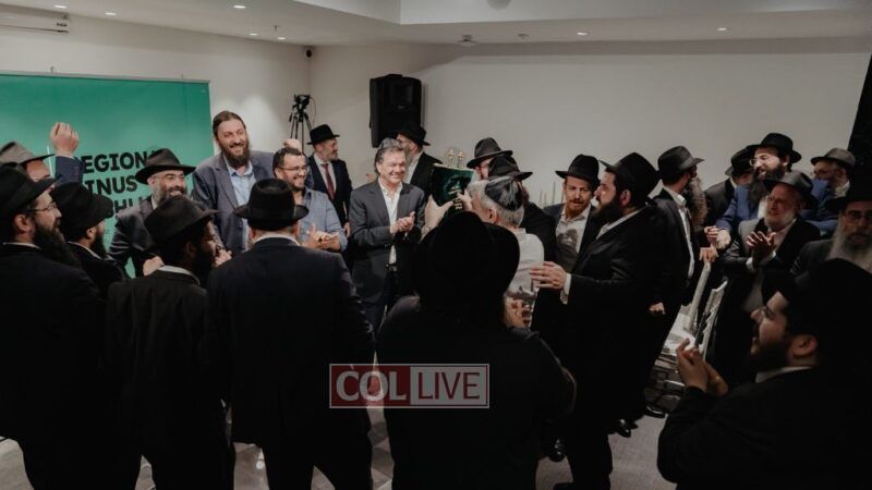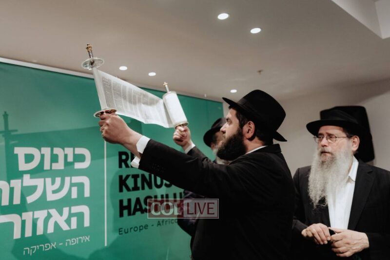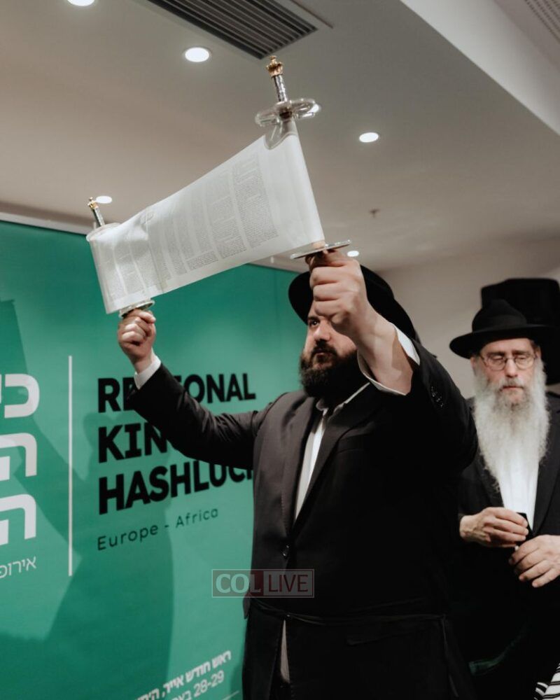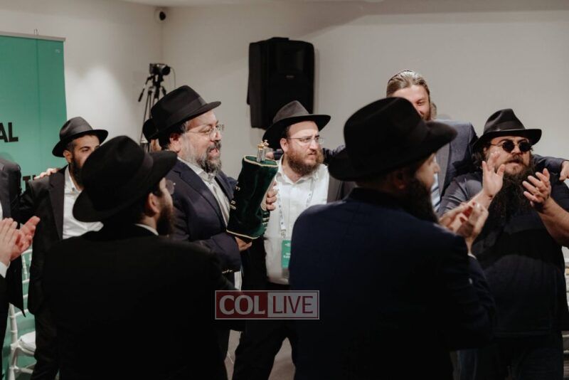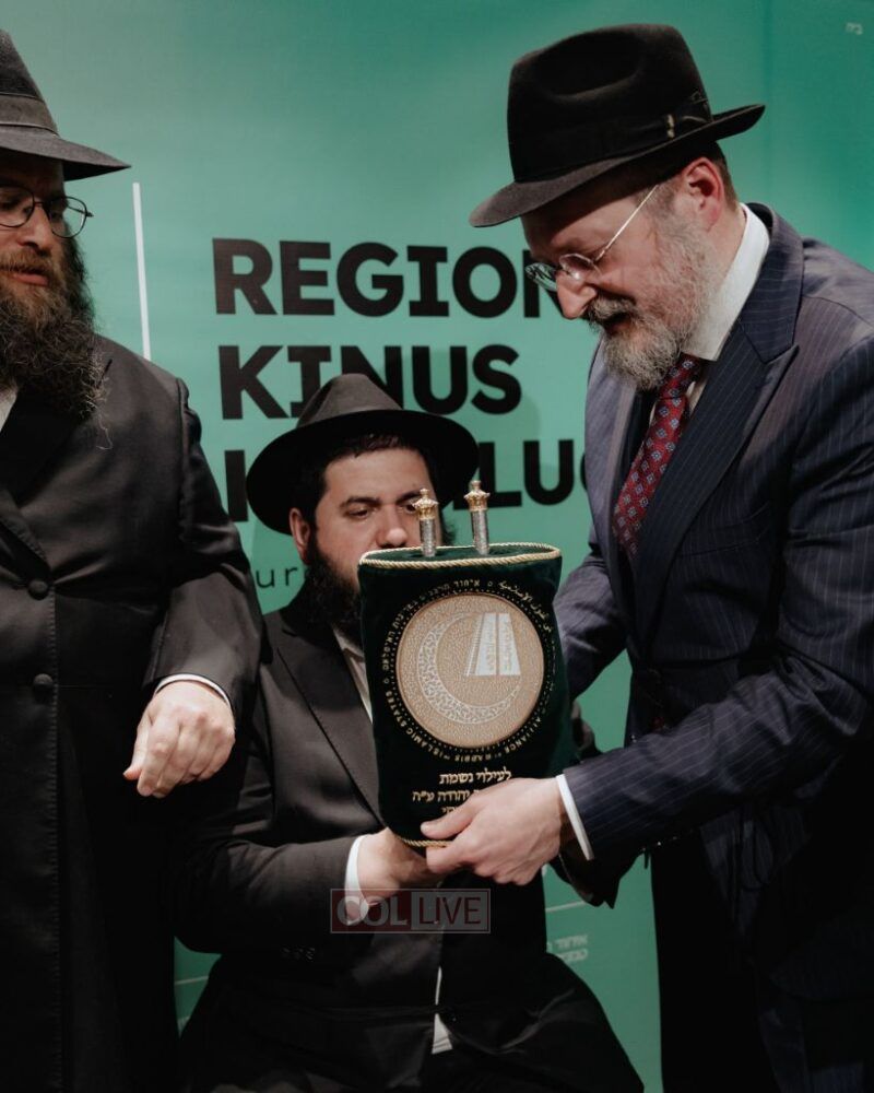 There were also emotional moments of spiritual celebration. Rabbi Baruch Myers from Bratislava completed a Siyum HaShas in memory of his mother. Rabbi Mendy Chitrik—alongside the Alliance of Rabbis in Muslim Countries—presented a new Sefer Torah dedicated in memory of Rabbi Kotlarsky. The scroll will be used to service Jewish communities in Muslim countries that don’t yet have permanent Torahs of their own.