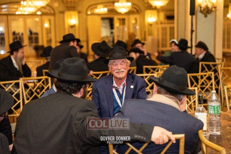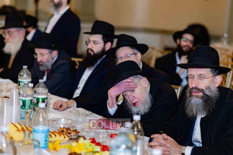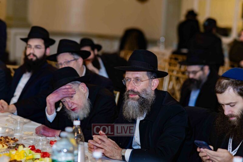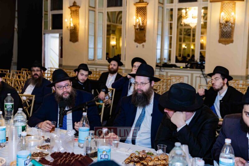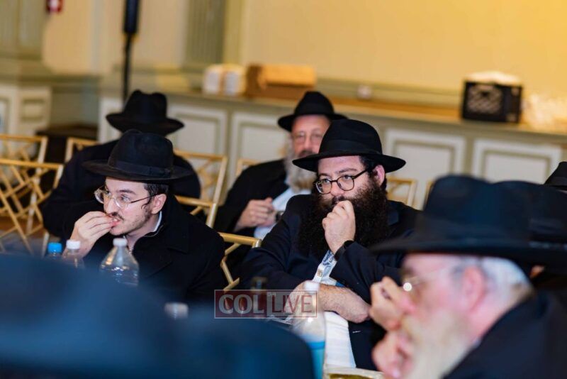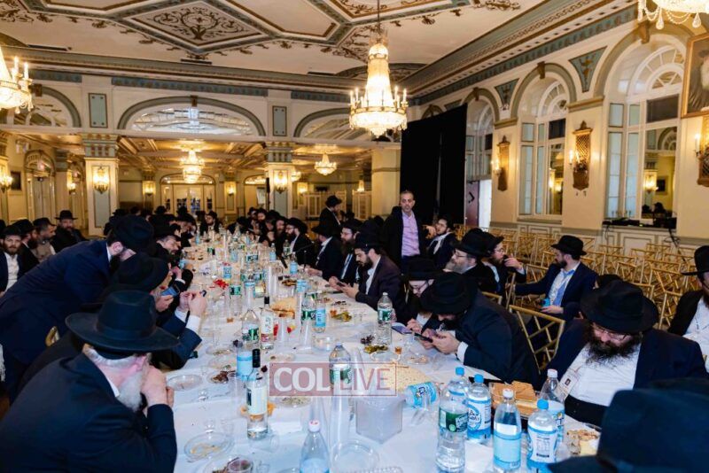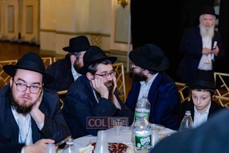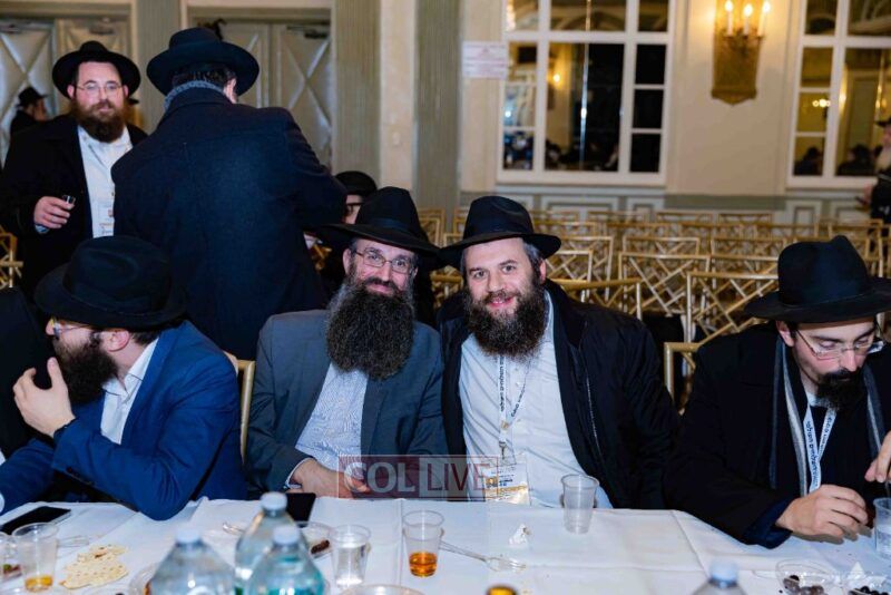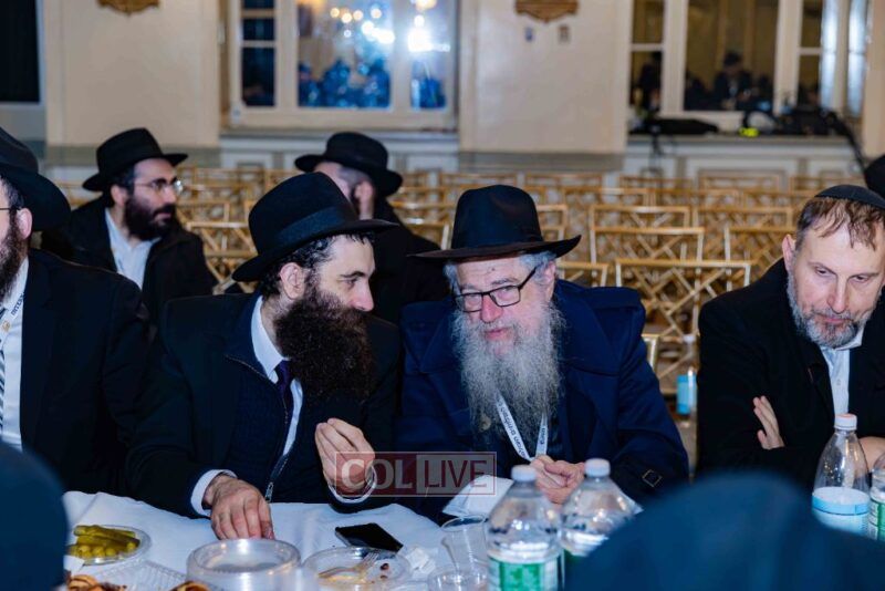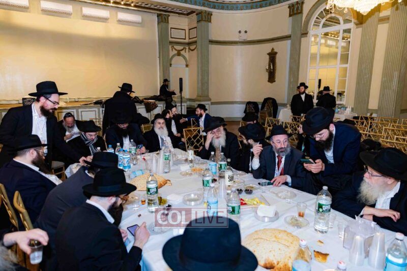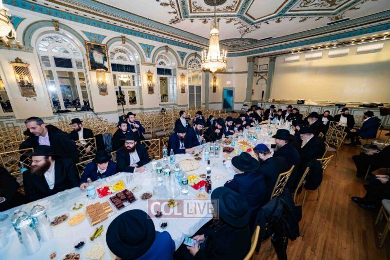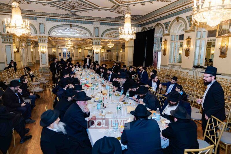 Rabbis, chassidim and bochurim were joined by participants returning from the gala banquet of the International Kinus Hashluchim that took place hours earlier in New Jersey.