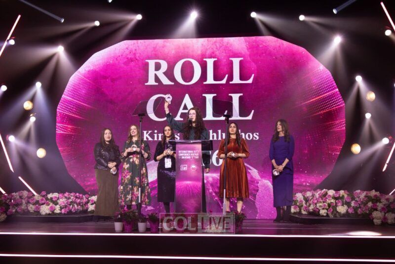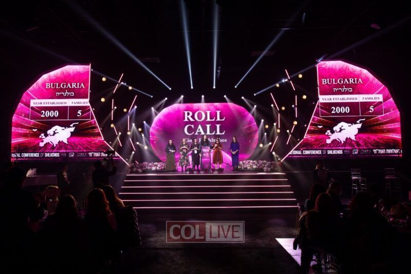 The evening culminated in the iconic International Roll Call, as shluchos rose country by country to be recognized. As shluchos from all 100 countries were called, including the 2,464 shluchos from all 50 United States, and new centers in Laos and Dar es Salaam, Tanzania, were warmly welcomed, the room erupted. Thousands of women pulled out tambourines, a tribute to Miriam, who led the Jewish women in song after the splitting of the sea, and filled the convention center with music and dance.