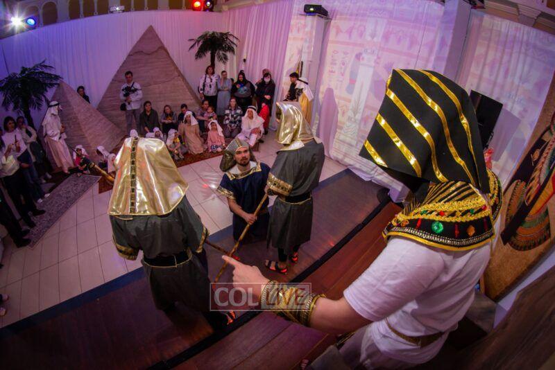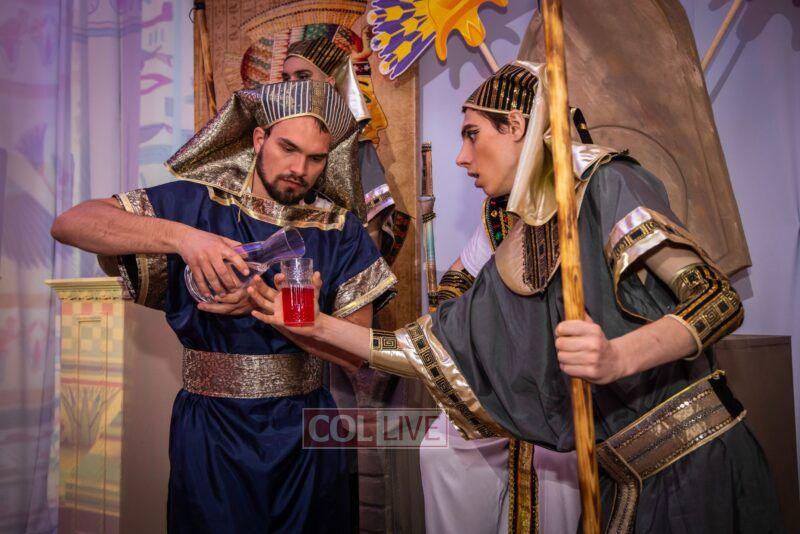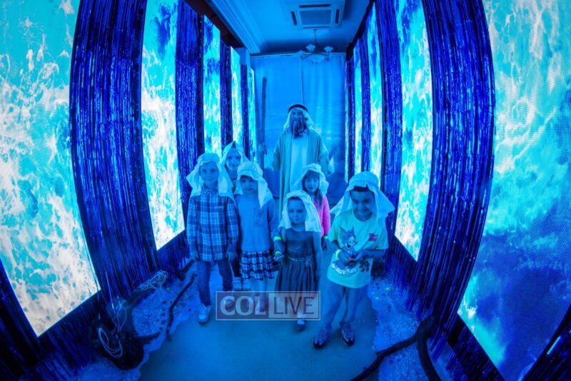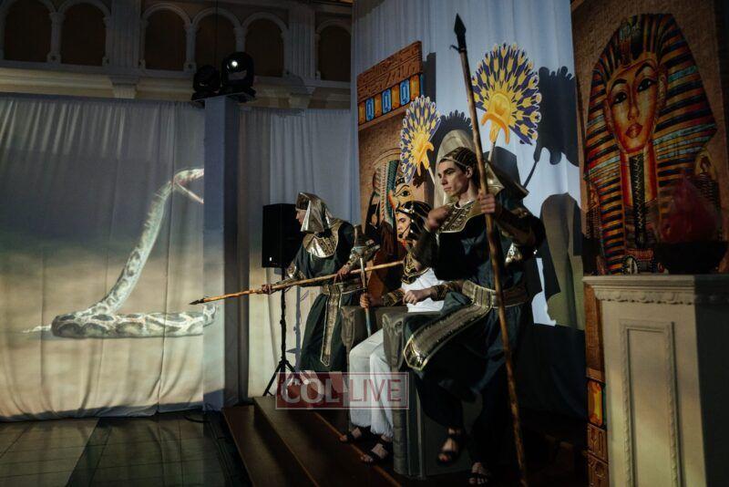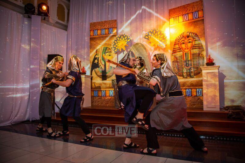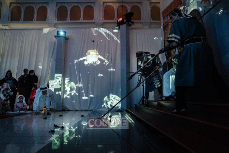 They then met Moshe who brought them to King Pharaoh’s palace where they watched the 10 plagues unfold in front of their eyes, with accompanying sounds, lights, video mapping, and relevant props that were occasionally dropped from above them.