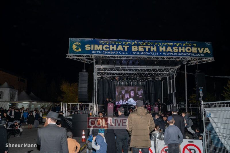 Chabad of Cote S. Luc in Montreal, Canada, once again hosted a Simchas Beis Hashoeva celebration featuring Shimon Sibony, the Yavne Boys Choir, and the Shearim Band. The community danced together and was inspired by a video of the Rebbe. Photos